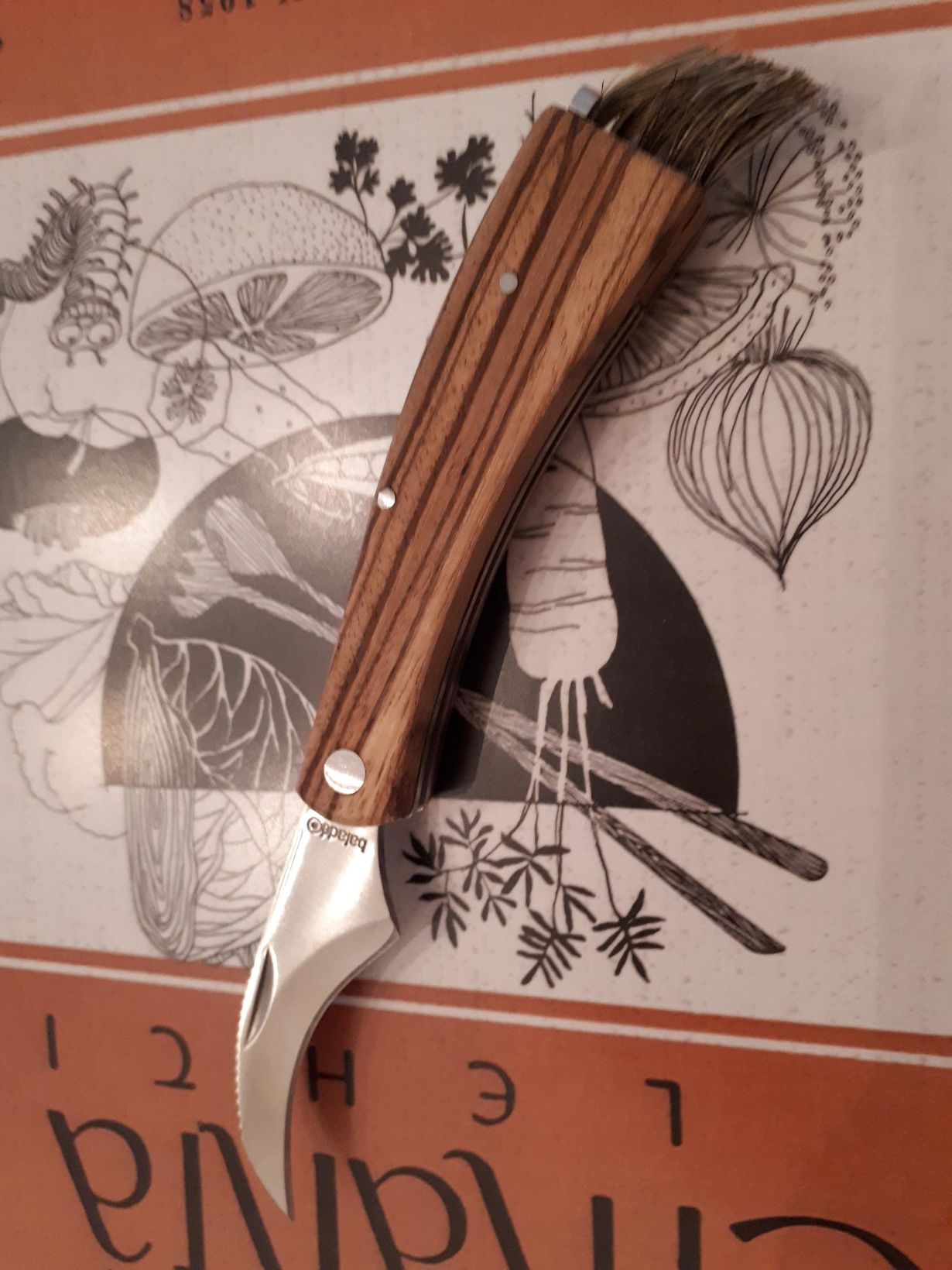 Upea sieniveitseni on juhannuslahja muutamien vuosien takaa. Vietimme jussia ystävien saarella ja kokolla istuessa isännän veli kävi jakamassa kaikille naisille juhannuslahjat.