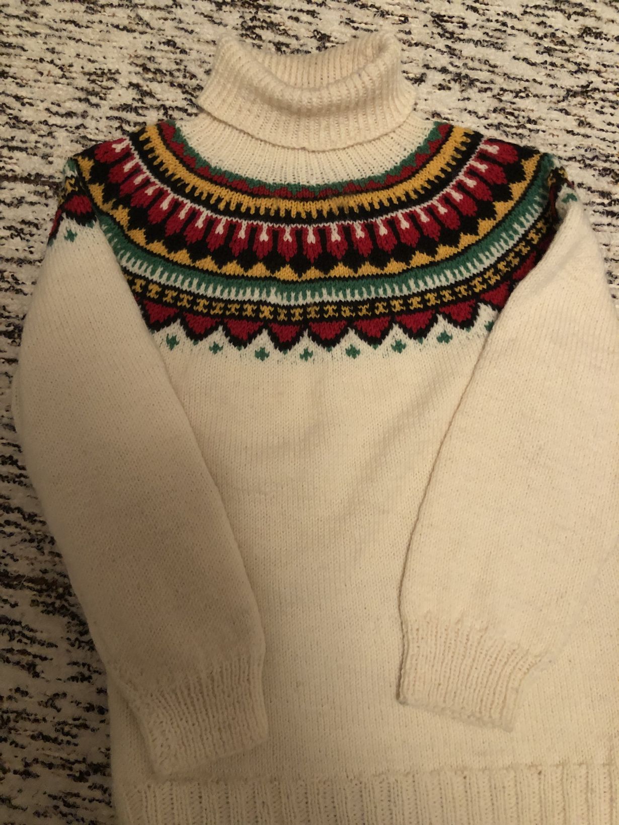 Ollessani 8 vuotias - vuonna 1960 - äitini kutoi minulle vihreän revontulipaidan. Minulle, kuten myös kaikille sisaruksilleni (meitä on kahdeksan), monelle serkulle ja naapureiden lapsille. Tykkäsin puserosta kovasti ja mielessäni pusero säilyi vuosikymmenet. Toistakymmentä vuotta sitten, äidin ollessa jo yli kahdeksankymmentä vuotta, hän kutoi minulle uuden revontulipaidan, mikä minulle nyt on ollut erittäin rakas (ja lämmin,hyvä) - eritoten nyt, kun nyt 96-vuotias äitimme on vakavasti sairaana ja emme tiedä, miten tässä käy....