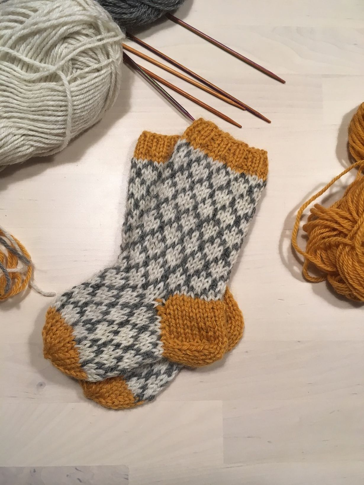 Lähetä kuvakisaan kuva lahjaksi tehdystä käsityöstä - voita Familonin pellavalakanat Villasukat siskonpojalle AnSa 28.9.2025 klo 21:47 Sisko sai esikoisen ja tein hänelle omien villasukkieni jämälangoista pikkuiset kuviosukat