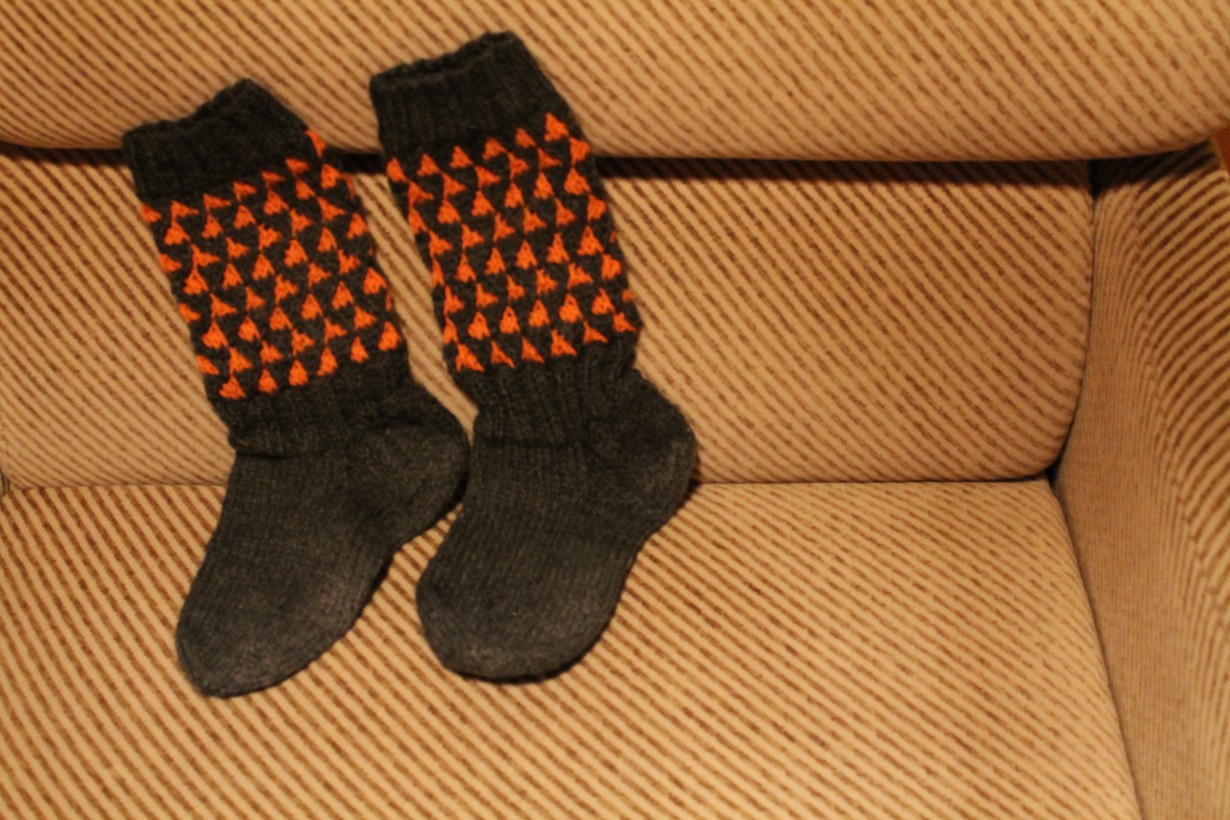 Neuloin Islannin matkalta ostetuista langoista lämpimät sukat.