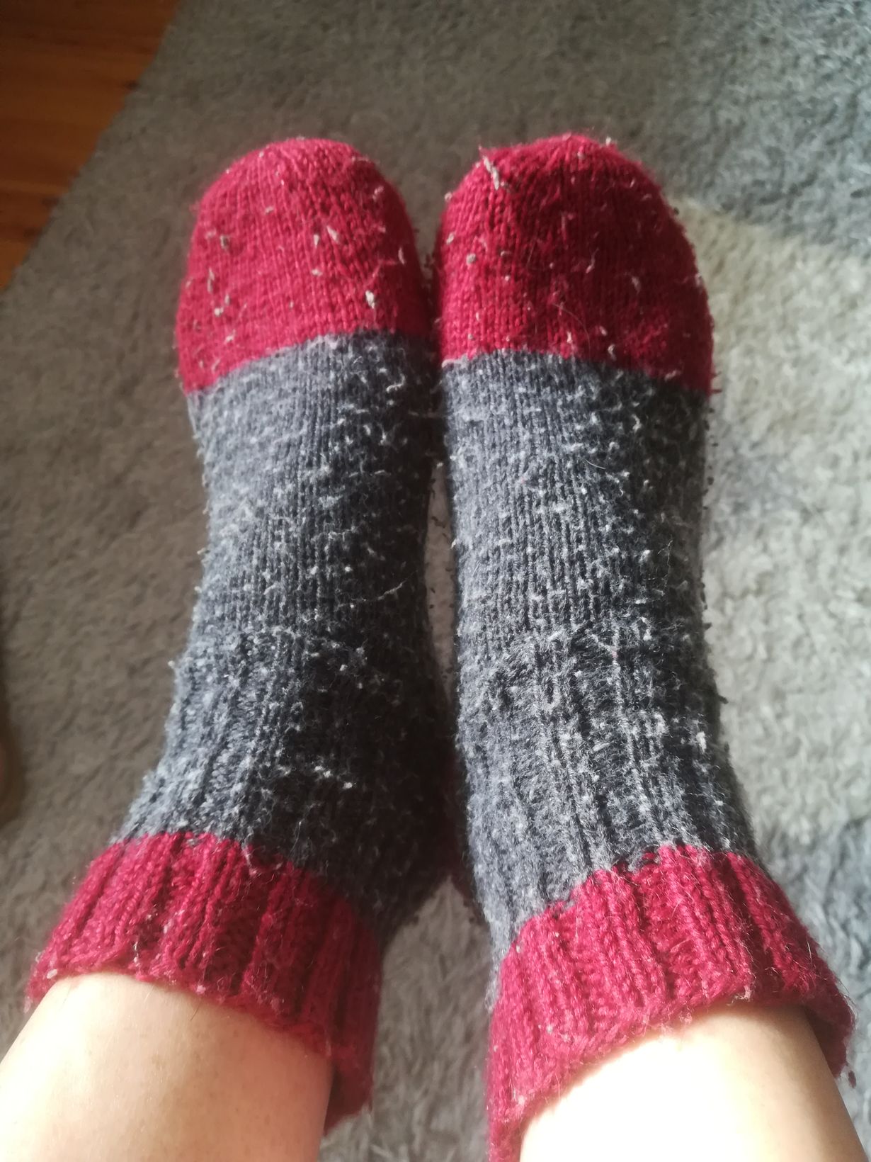 Ennen kuolemaansa äitini teki pinon villasukkia, lapsilleni useita eri kokoja. Nämä sukat lämmittävät vieläkin varpaitani vaikka äidin kuolemasta on jo 11 vuotta.