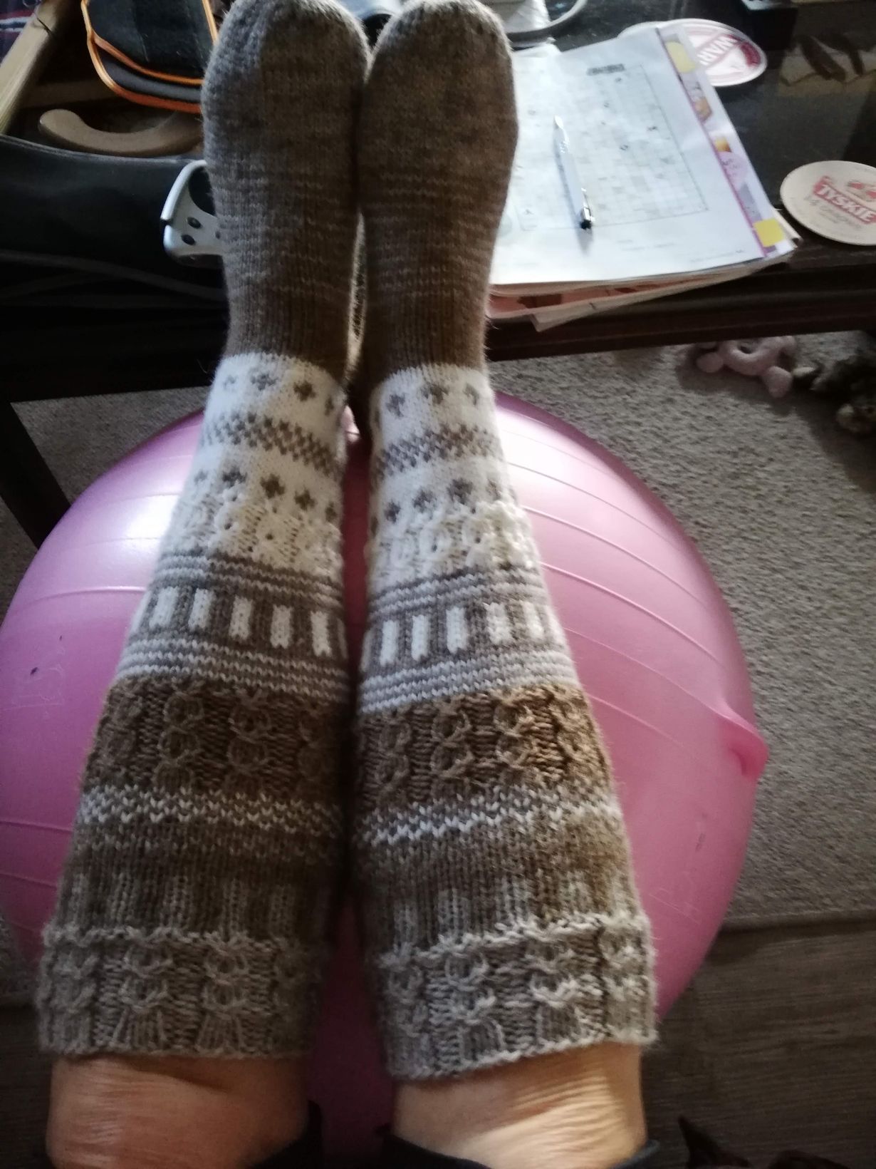 Äitienpäivä lahjaksi saadut tyttäreni melonta kaverin kutomat pitkät villasukat, ovat kyllä kauneimmat ikinä nähnyt, onneksi ne ovat nyt minun.