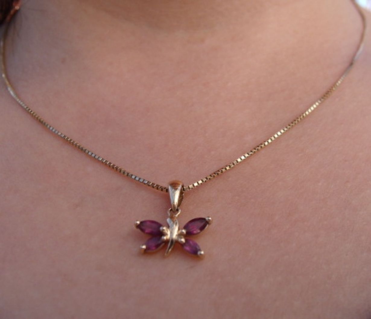 Pienen paikkakunnan etuihin kuuluu se, että korukauppias tietää lempivärini ja allergiat. Kun hän hankki myytäväksi tämän kaulakorun, tiesi hän oitis kenelle soittaa. Harvoin törmään violettiin kiveen kultakoruissa. Tämä on aarre, kiitos KoruIlona! :)