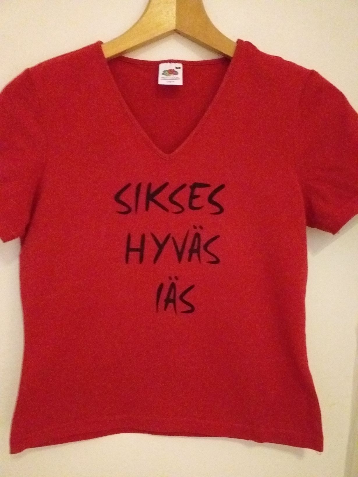 Tämän T-paidan ostin itselleni, kun täytin 50 vuotta. Luulin, että tulee ikäkriisi tai edes villitys. Ei tullut kumpaakaan.