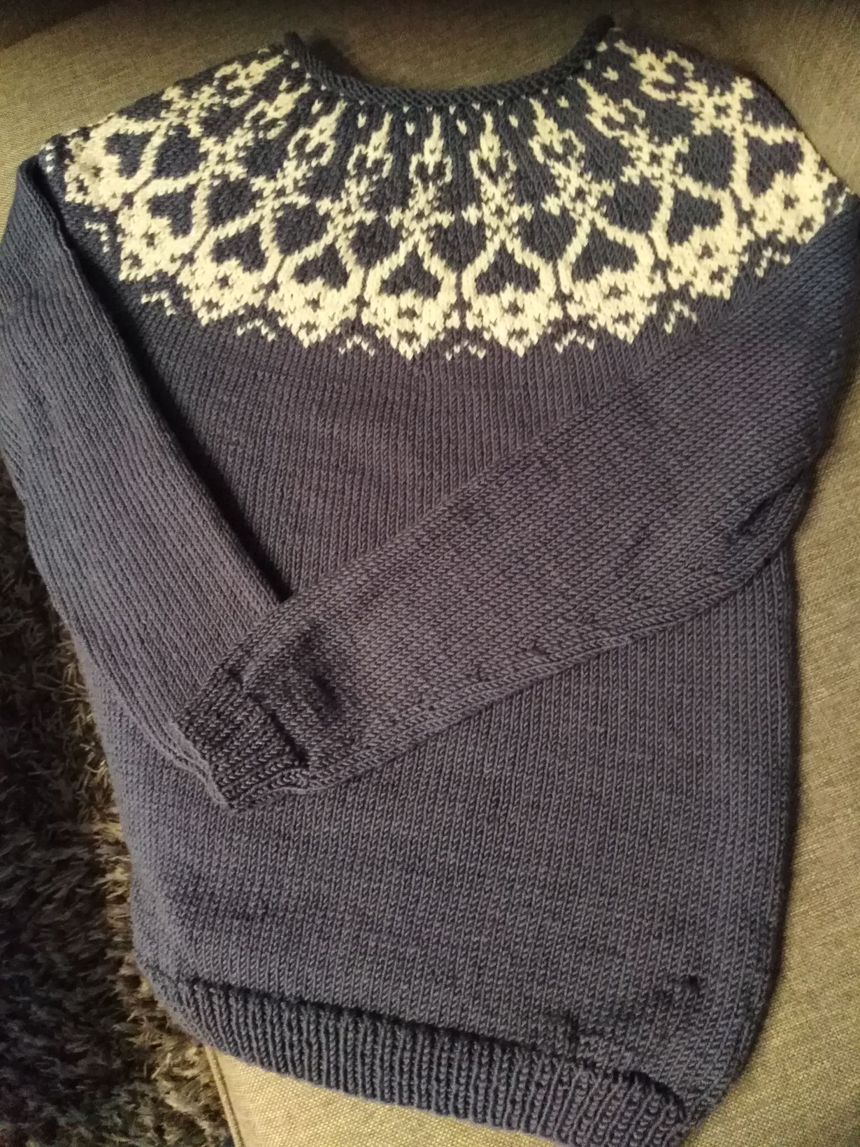 Tämän neuleen aloitin kun puolisoni kuuli sairastavansa kahta vakavaa syöpää. Tätä neuletta tein pitkillä matkoilla sädehoitoihin jossa puolisoni tukena olin,tämä neule on tehty suruista ja myöskin iloista kun yhdessä kuljemme tätä syöpämatkaa.Tämä neule on tärkeämpi kuin mikään.