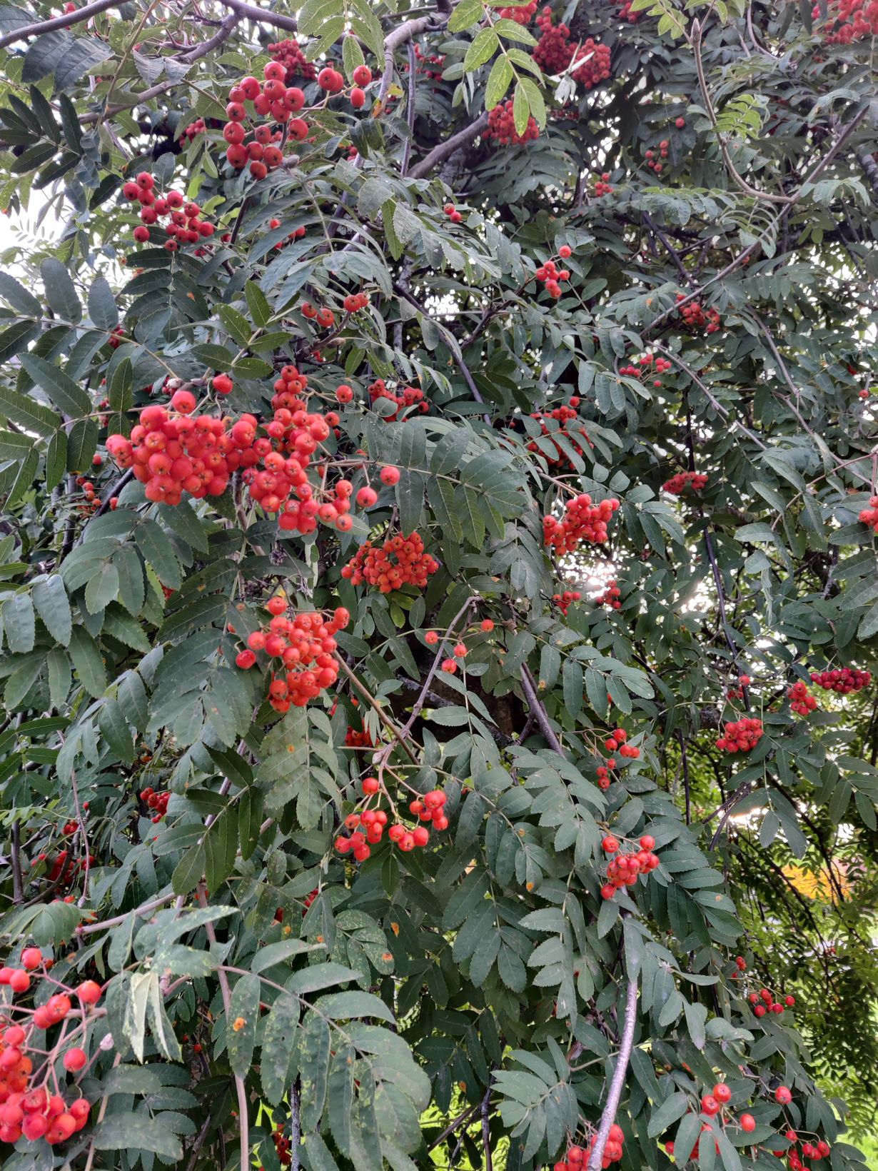 Tärkeässä paikassa kasvava pihlaja. Kuulin, että kansanperinteen mukaan pihlaja on "emännän puu". Syksyn hehku ja juuri tämä pihlaja tuovat lohtua arkeeni.