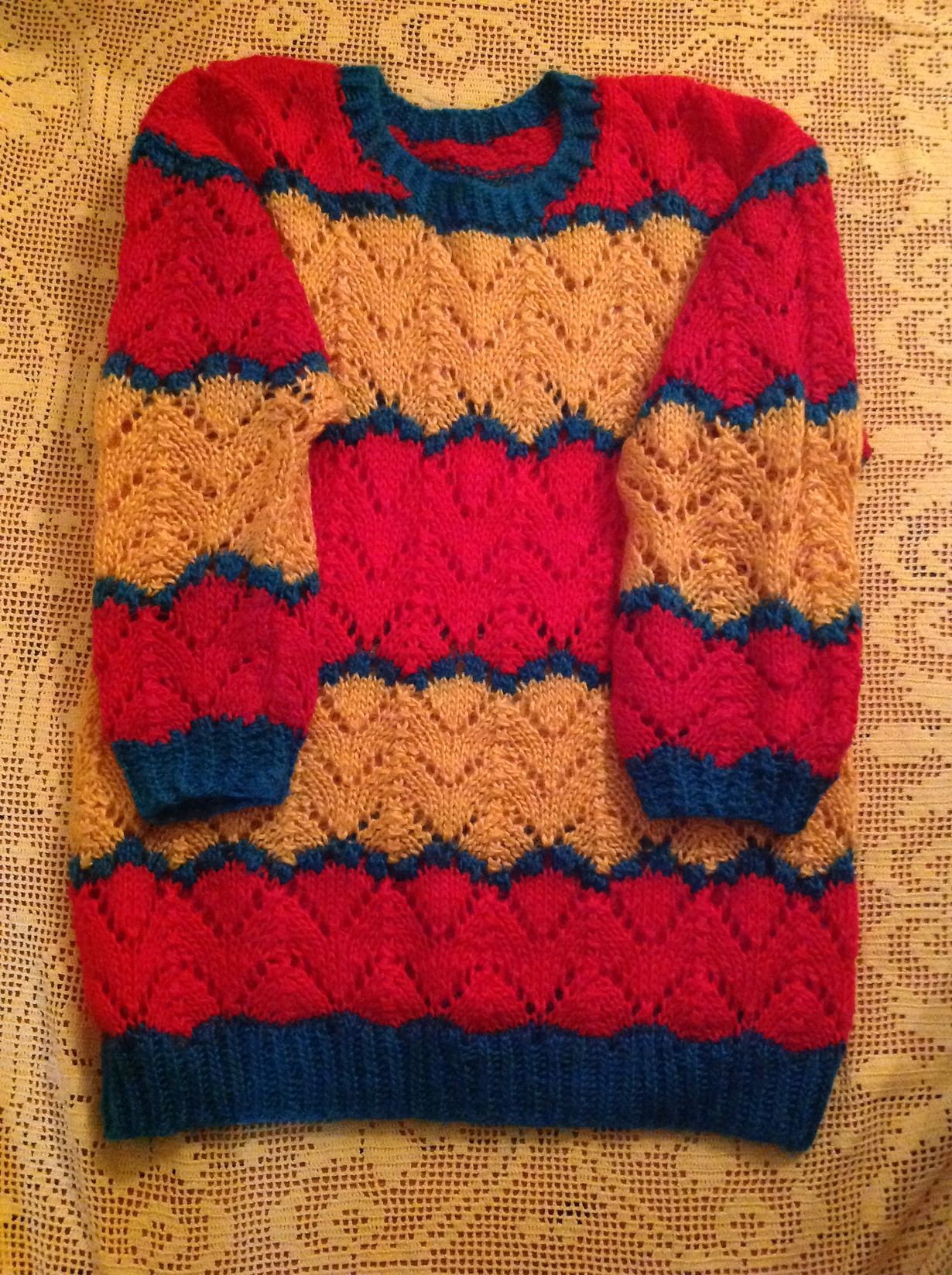 Kudoin tämän jätti-kokoisen villapaidan tyttärelleni joskus 80-90-lukujen vaihteessa. Kyllä kannatti! 😉 Sillä nyt minä saan puolestani nauttia hänen toinen toistaan upeammista neuleista.