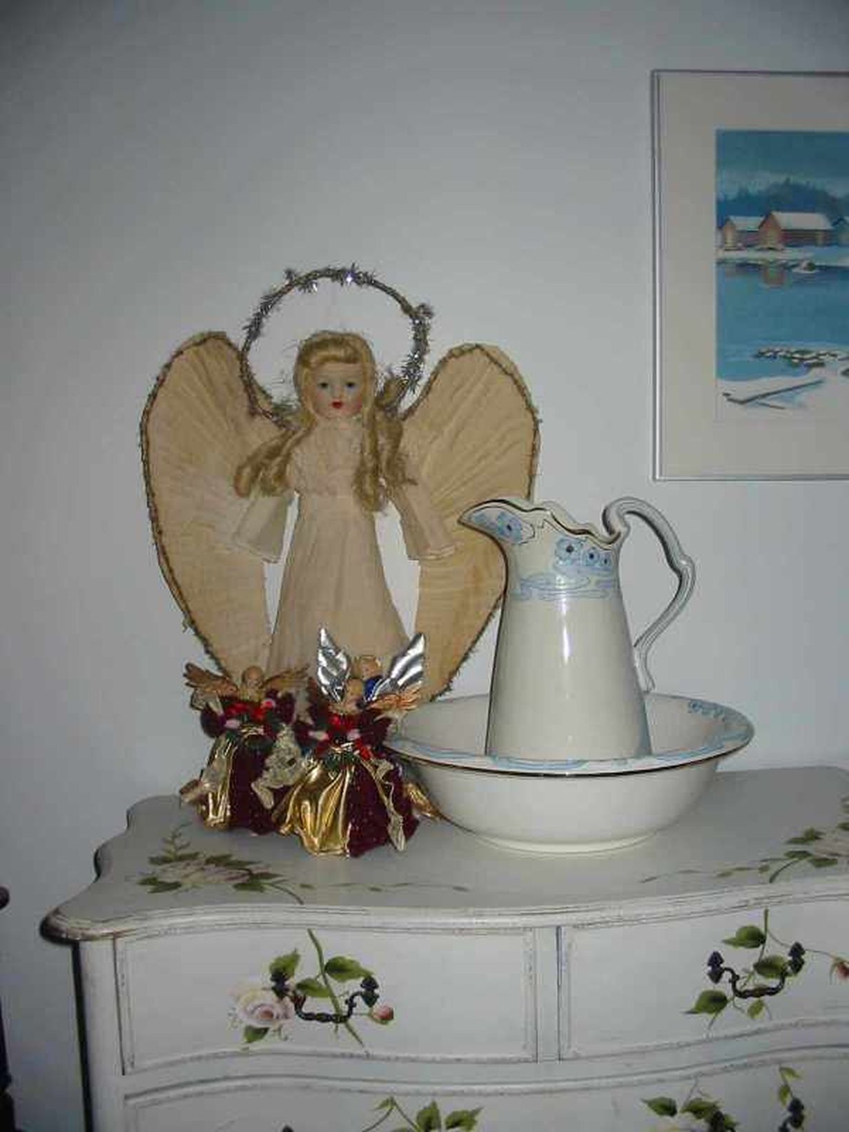 Enkelini on ex-mieheni mummin tekemä, luulisin, että 40- tai 50-luvulta. Joulu tulee, kun enkeli on laitettu esille. Mummi oli hyvä ystäväni ja tämä tuo hänet mieleeni aina hyvin vahvasti.