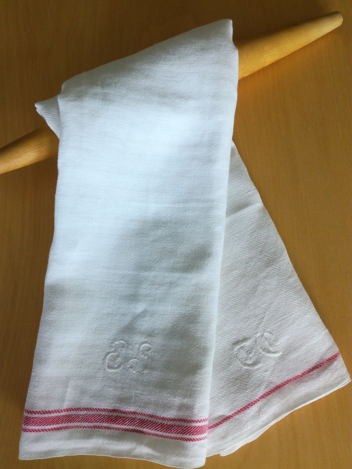 Pyyhkeet ovat kuuluneet äidilleni ja isälleni. Äitini tyttönimi ES on kirjailtuna puuvillapyyhkeeseen ennen naimisiin menoa. Vanhempani menivät naimisiin 23.12.1951 ja tuleva anoppi kirjaili pellavapyyhkeeseen EO, tulevan miniän kirjaimet. Avioliittoa kesti 62 vuotta. Äitini nukkui pois joulukuussa 2013 ja isäni kymmen kuukautta myöhemmin.