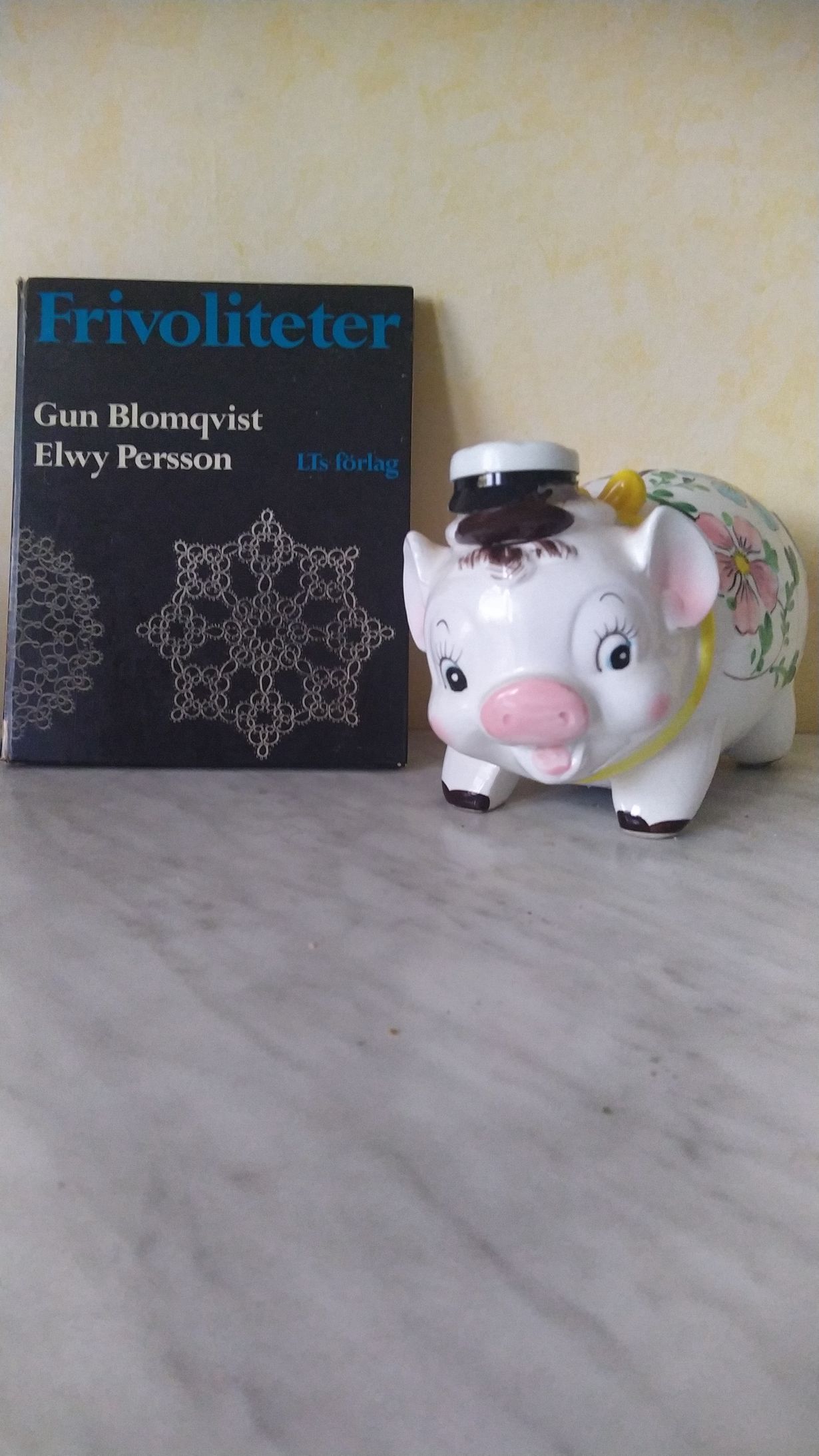 Olin lukiossa vapaaehtoisissa käsitöissä, jossa opimme eri käsityötekniikoita, mm frivoliten. Porsaan sain jo etukäteen, sinne vanhempani laittoivat rahaa, jonka sain käyttää lakkiaispäivän iltajuhlassa Segelillä.