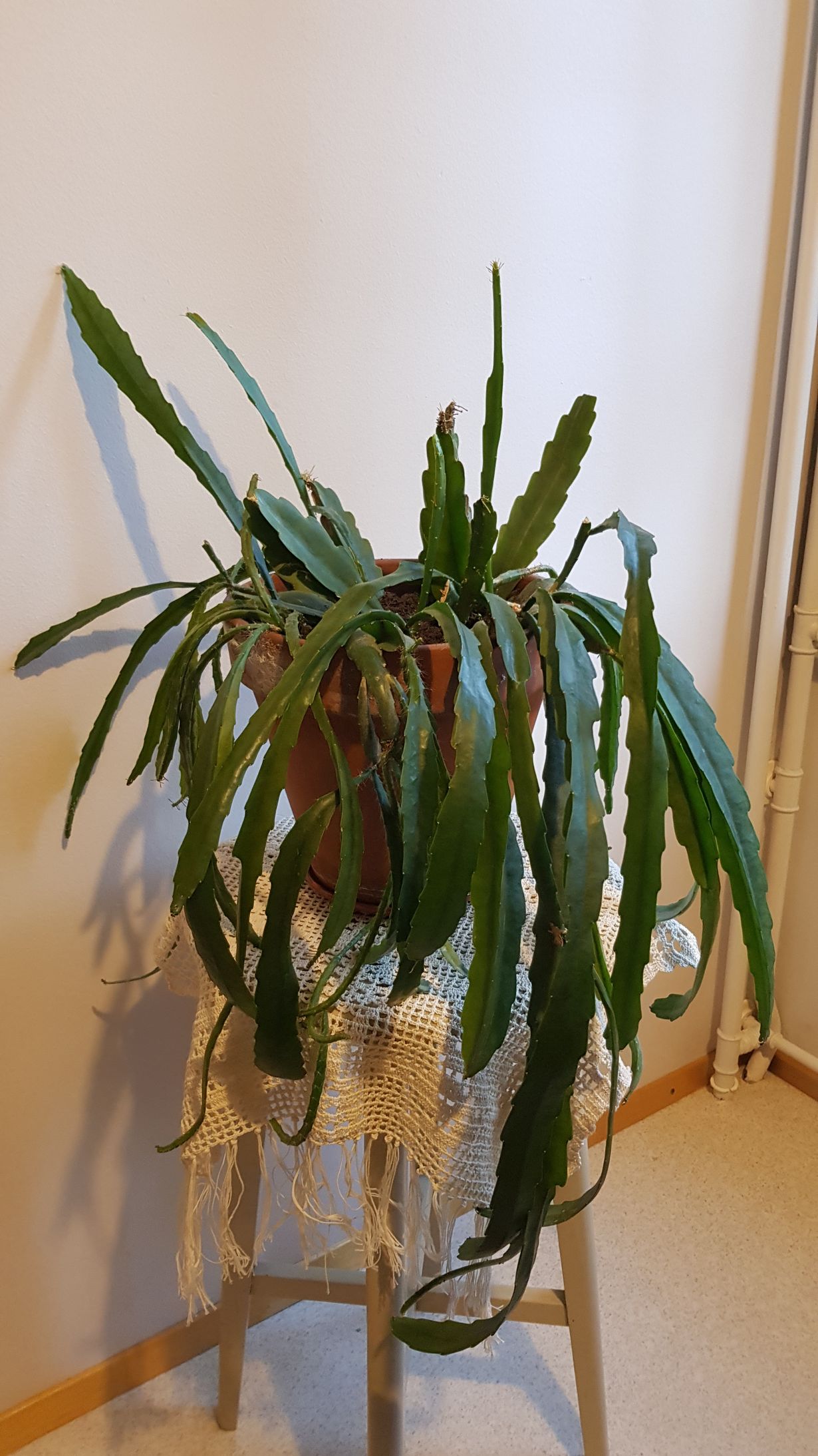 Olen kasvattanut tämän Yön kuningattaren edesmenneen äitini kukasta vuosien varrella katkenneista oksista. Hänen omansa kukki joka vuosi, itselläni ei vielä vuosienkaan jälkeen kertaakaan. Sitä odotellessa!
