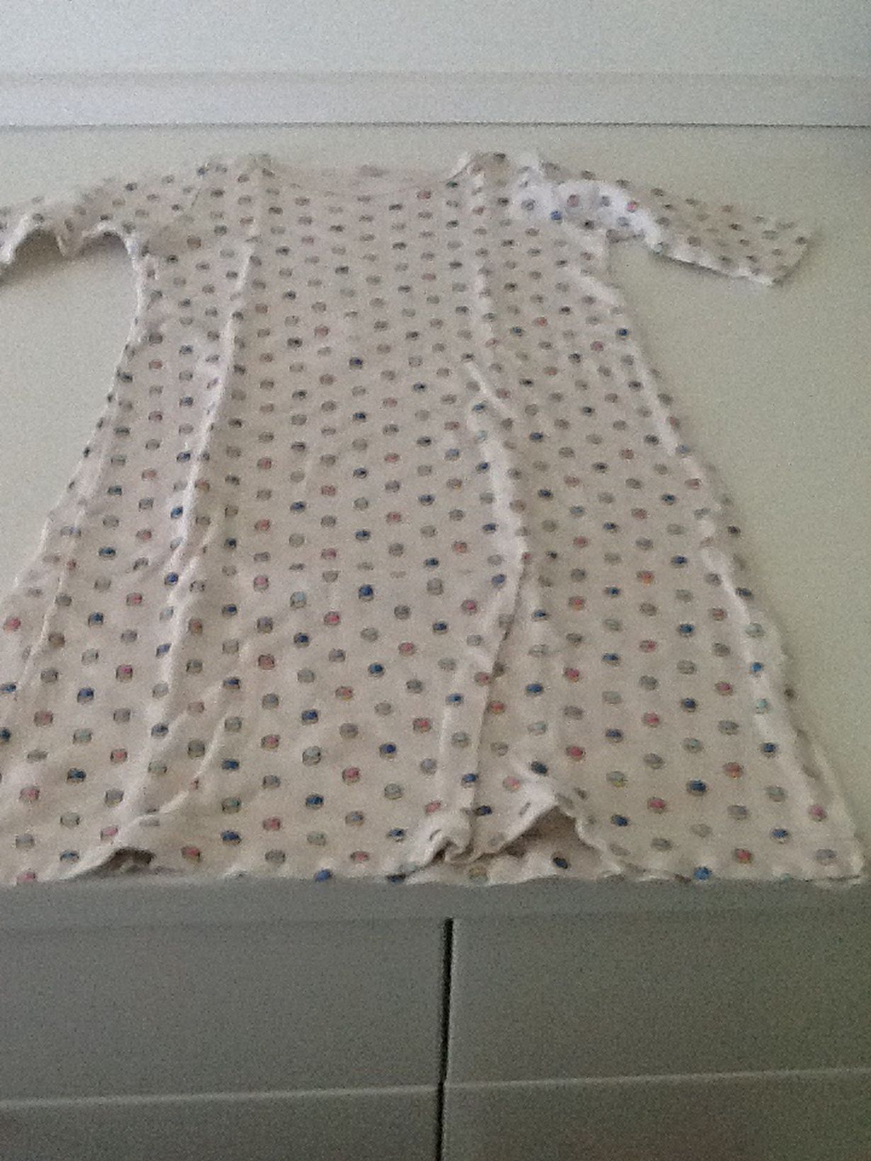 Tämä helmasta kiristettävä yöpaita on ollut vuoden 1992 äitiyspakkauksessa. Myös nuorin (2005) käyttivät niin kauan, että helma oli polvien yläpuolella!