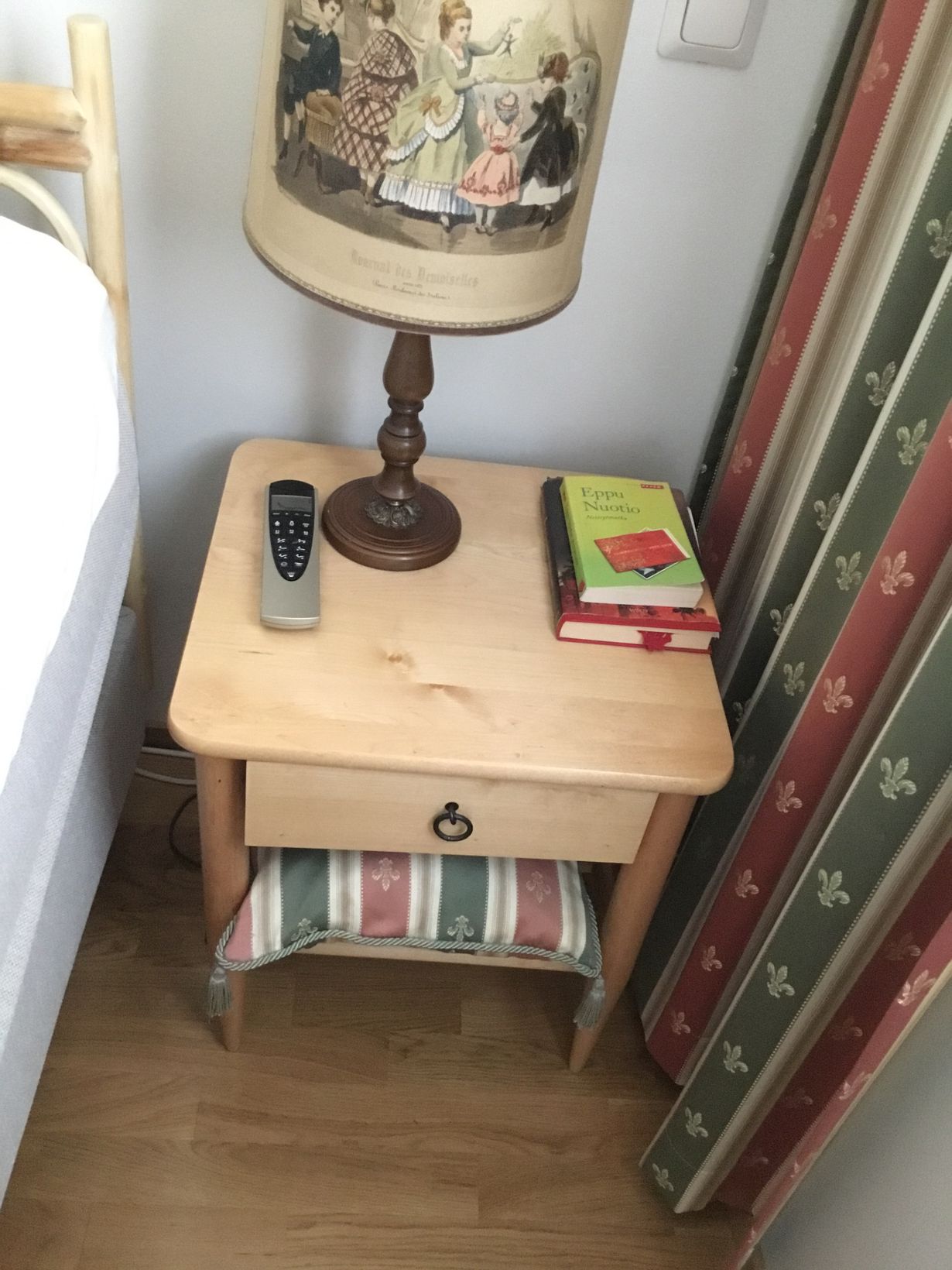 Pidän yöpöytää niin tärkeänä että ilman en pärjää. Yöpöytä on kulkenut mukana muutosta muuttoon kuin hyvä kaveri konsanaan.