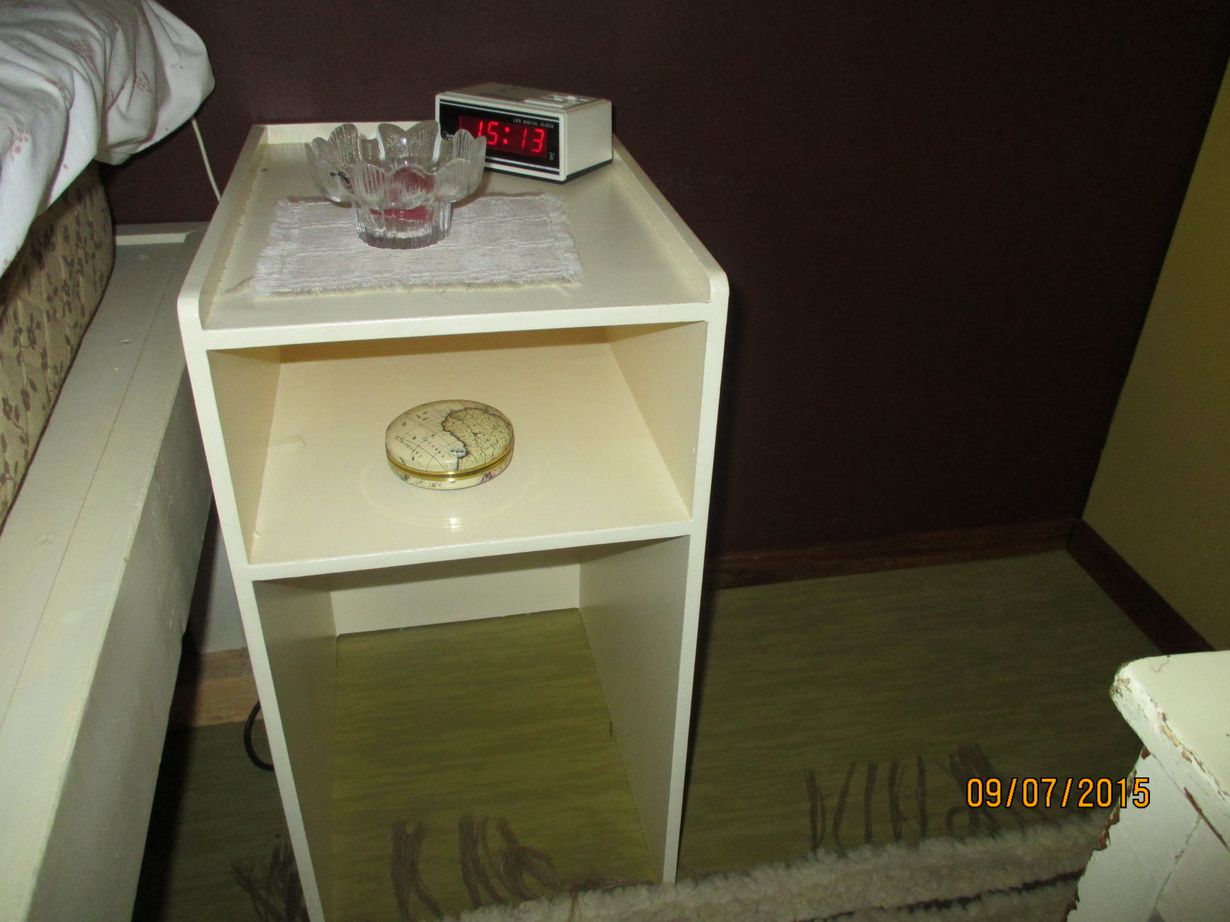 rahat olivat vähissä jolloin yöpöytä piti tehdä itse rahat riittivät juuri muutamaan levyn palaseen,siitä asti pöytä on ollut käytössä ja on vastaisuudessakin.