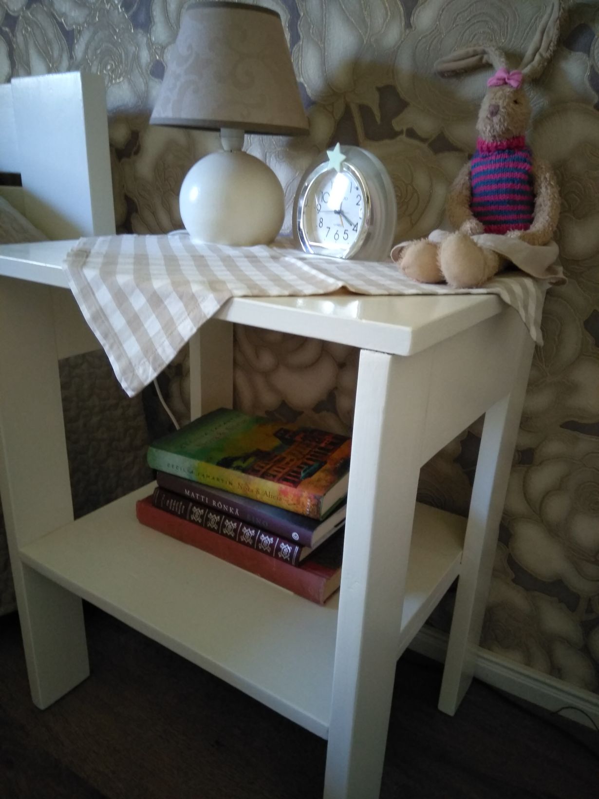 Kuvaa yöpöytäsi – voit voittaa Familon -untuvapeitteet! Yöpöytä Orvokki 24.7.2018 klo 18:14 Kansalaisopiston puutöillä tein 30v sitten kahdet yöpöydät. Maalasin ne myöhemmin valkeaksi.