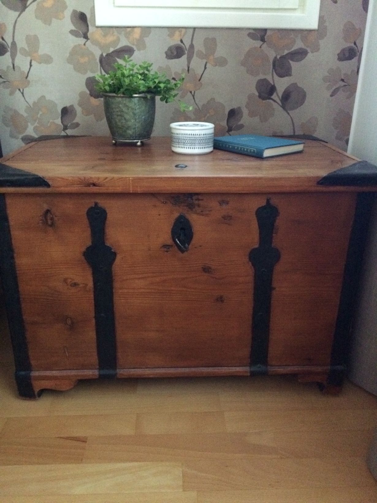 Yöpöytäni on vuodelta 1842, 176 vuotias kapiokirstu. Sain sen äidiltäni ja entisöin käyttööni. Äitini oli saanut kirstun isältään ja lieneekö ollut hankinta huutokaupasta tai jostain muualta, sitä emme tiedä.