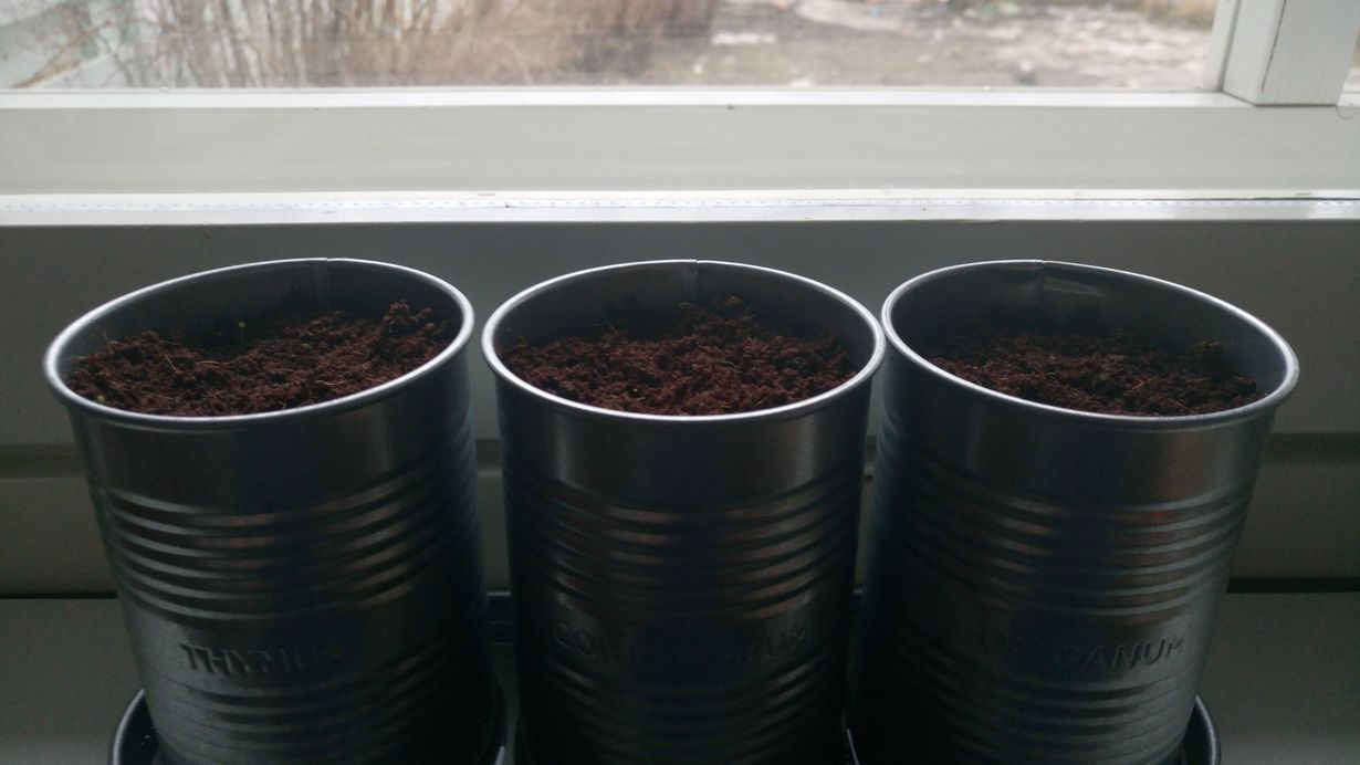 Muuttaessamme avopuolisoni kanssa ensimmäistä kertaa yhteen viisi vuotta sitten saimme lahjaksi nämä ihanat yrttiruukut. Uuden kappaleen alkaessa elämässämme unohdimme ne kuitenkin silloisen asuntomme kaapin perälle. Nyt, huhtikuun alussa, muutimme uuteen asuntoon koiranpennun kanssa ja pakkaamisen yhteydessä löysimme nämä ruukut uudelleen. Huonekalujen järjestelyn lomassa istutimme siemenet purkkeihin ja nyt kun uusi koti on sisustettu, nousivat mullasta ensimmäiset timjamin sirkkalehdet.