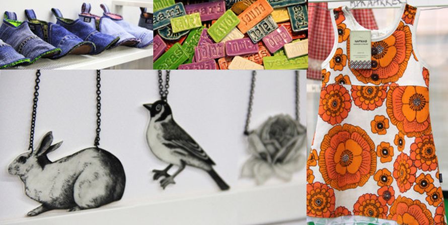 Suosikikseni nousi Intoa Designin hauskat kierrätysmattokassit ja kierrätysfarkkutossut, jollaiset ostin pukinkonttiin.