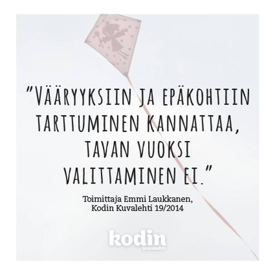 "Vääryyksiin ja epäkohtiin tarttuminen kannattaa, tavan vuoksi valittaminen ei." Toimittaja Emmi Laukkanen, KK19/2014