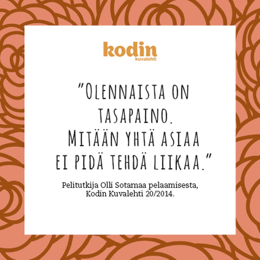 Tasapainosta 9.11.2014 klo 17:13 Mikä on sinun voimalauseesi? Kerro se meille muillekin kirjoittamalla kommenttikenttään. Tilaa Kodin Kuvalehti voimalause Tilaa Lue digilehtenä