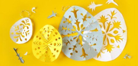Paperikauppojen ihanuudet houkuttavat, mutta niille ei aina kaksi käyttöä. Pääsiäisgirlandina saat aarteet esille, ja munien leikkaaminen paperista onnistuu stressittömästi keneltä vain.
