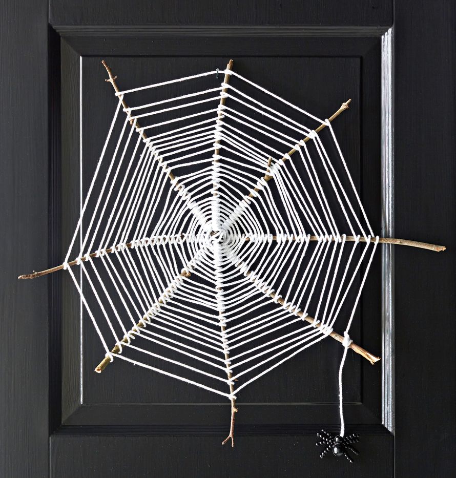 Askartele metka hämähäkinseitti luonnosta kerätyistä oksista ja ripusta siihen puuhelmistä pujoteltu hämähäkki.