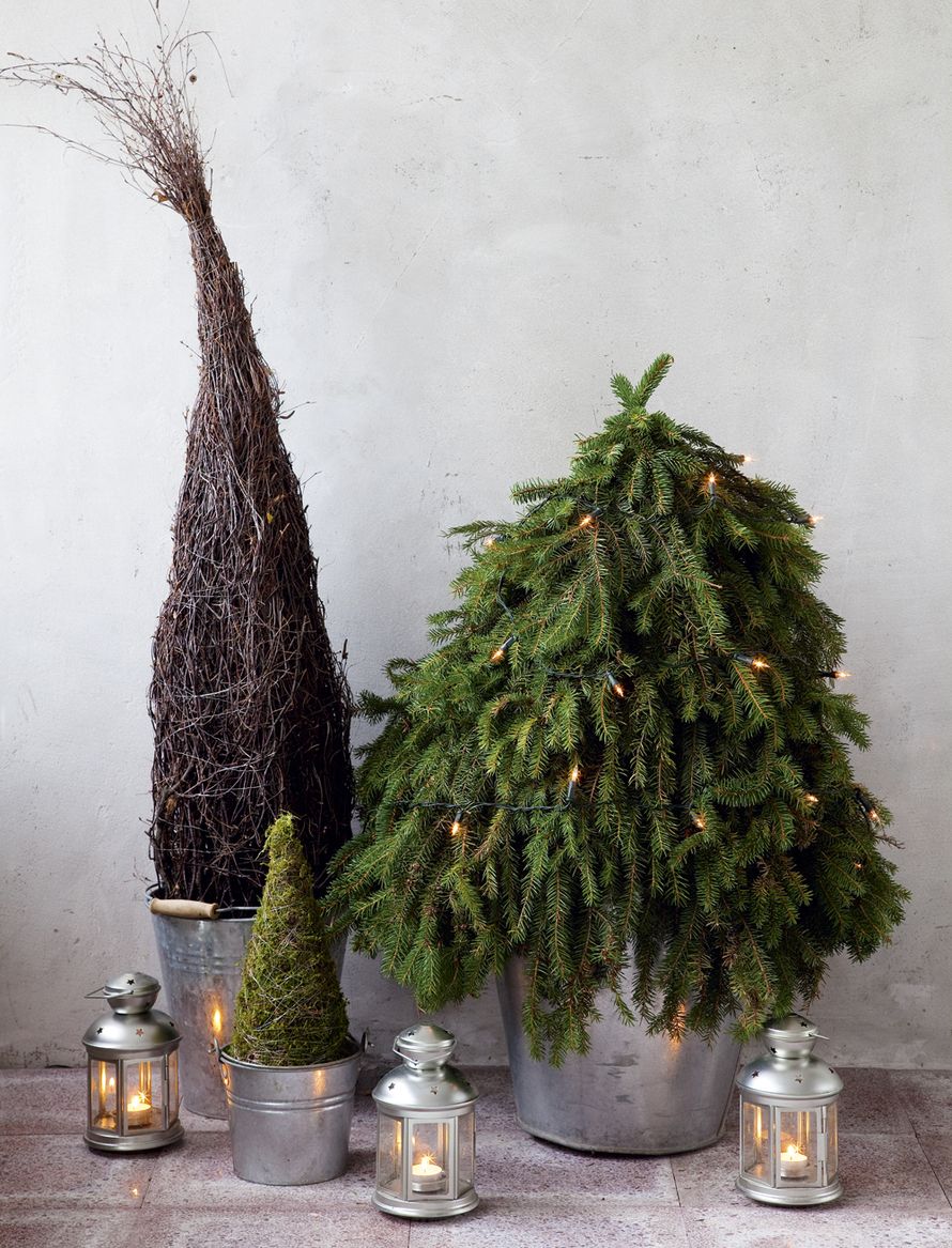 Itse tehty koristekuusi tuo verannalle joulun tunnelmaa. Muistathan, että tarvitset havujen ja sammaleen keräämiseen maanomistajan luvan.