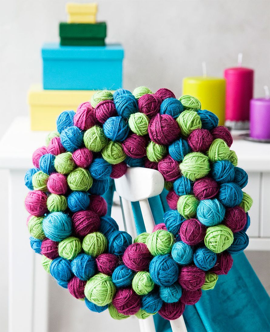 Jämälangat käyttöön! Tämä kranssi syntyy vaikka televisiota katsellessa.