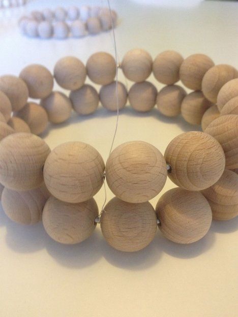 Pujota kuhunkin renkaaseen 18 puuhelmeä.