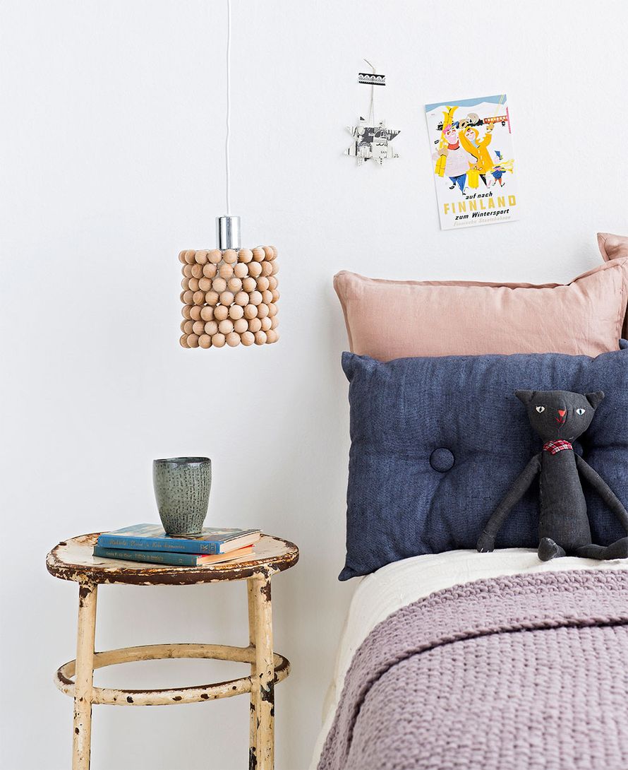 Haluatko kotiin persoonallista ja kaunista pehmeyttä? Suurista puuhelmistä valmistuu retrohenkinen lampunvarjostin.