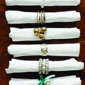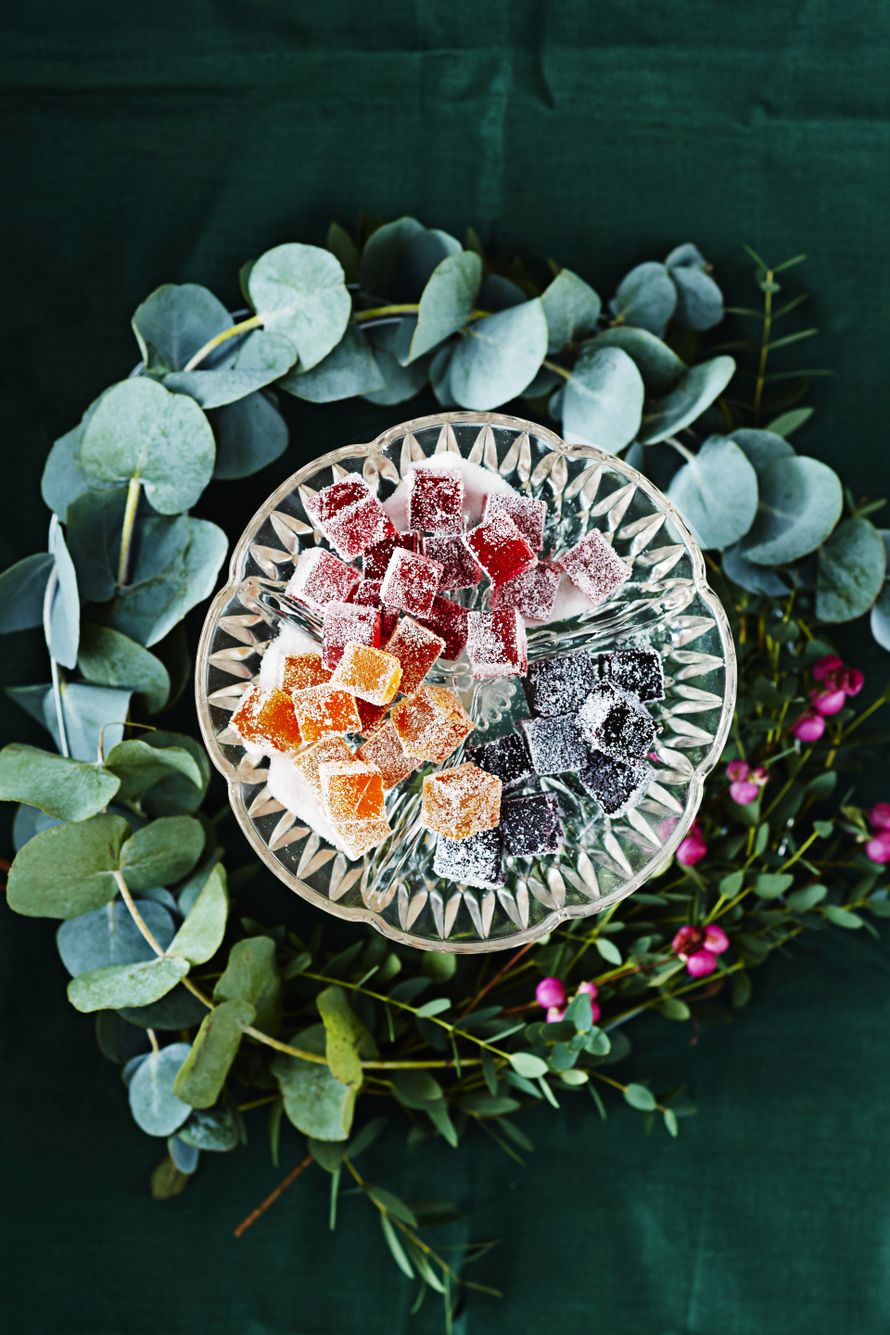 Vihreät oksat ja lehdet näyttävät hurmaavilta astioiden lomassa vihreää liinaa vasten. Ne kestävät pöydässä aterian ajan ja jopa yön yli ilman vettä. Taika on siinä, että valitset floristin avulla lajeja, jotka pysyvät kuivuessaankin kauniina. Esimerkiksi kuvan eukalyptus ja lumimarja ovat sellaisia.