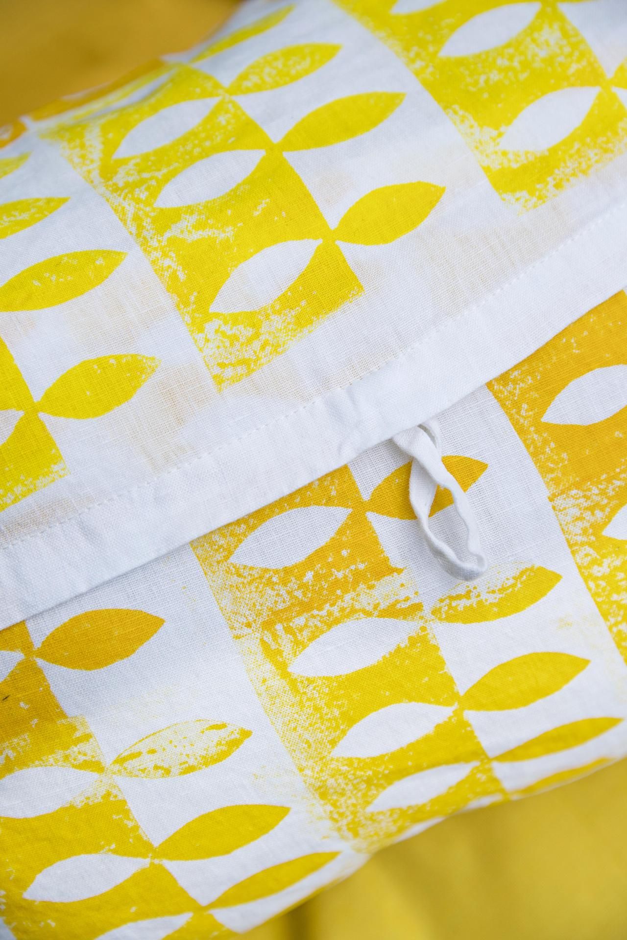 Jos kuvioit tyynynpäälisiä tai kesäkasseja, muista laittaa toinen pyyhe tai paperia päällekkäisten kankaiden väliin, jotta väri ei leviä kankaan läpi.