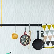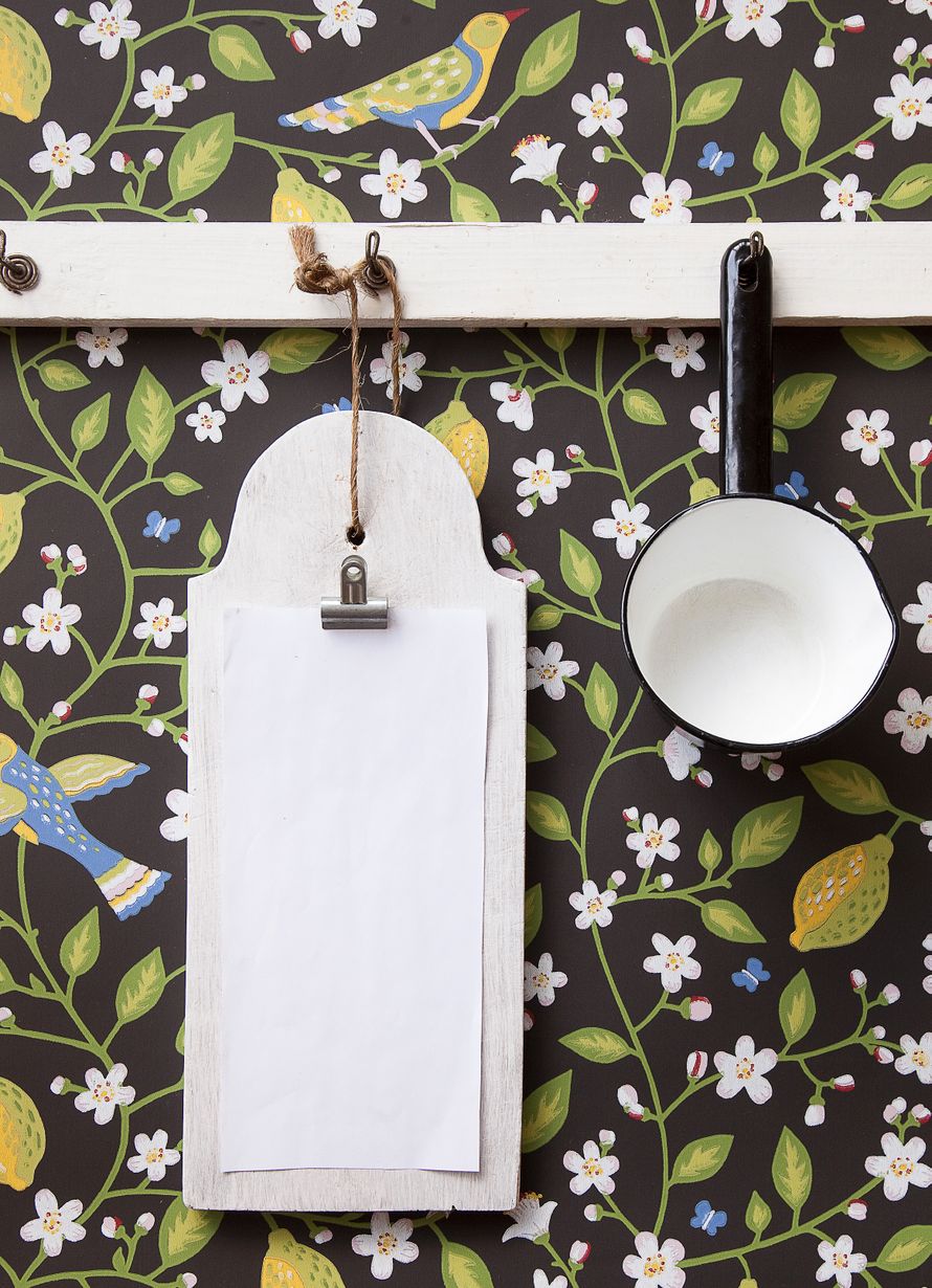 Kesä kukkii tapetissa. Sandbergin Amalfi 78 e / rulla, Maricken Shop. Metallinipsuja myy Clas Ohlson.
