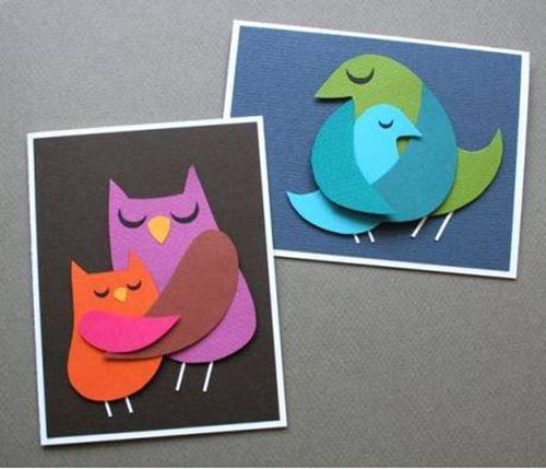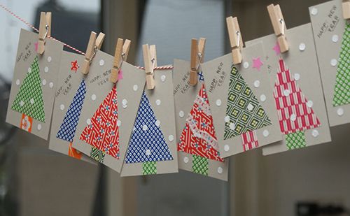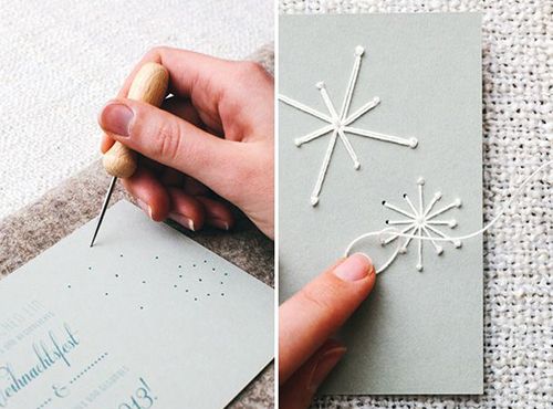 Kirjavia kuosipapereita yhdistämällä saa näyttäviä joulukortteja. Lumihiutaleita voi ottaa rei'ittemellä valkoisesta paperista. Lähde