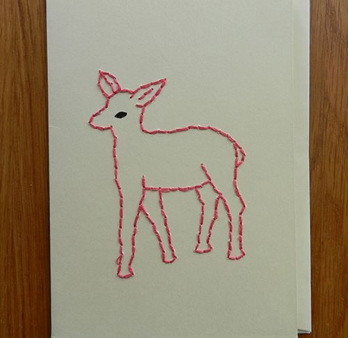 Myös ompelukuvamaiset ääriviivoja myöden ommellut kortit ovat hellyttäviä. Tee vaikka possu tai lammas. Mitä kömpelömpi muoto, sitä sympaattisempi. Lähde