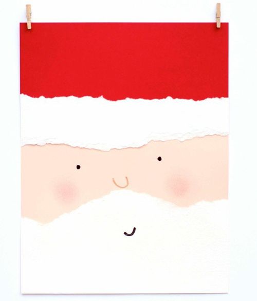 Nyt saa repiä luvan kanssa. Joulupukin naama syntyy kolmesta eri värisestä paperista. Lähde.