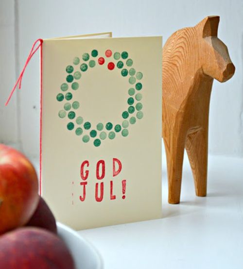 Simppeli, mutta juhlava kortti syntyy lyijykynän kumipäätä leimasimena hyödyntäen. Lähde