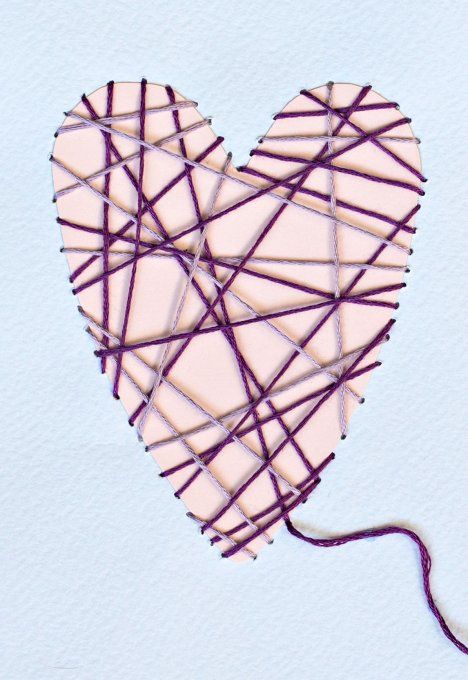 Voit myös värittää korttipohjan ja liimata sen kartongille. Leikkaa kortti ääriviivoja pitkin. Ompele sydämen yli pitkiä pistoja. Liimaa kortin taakse tukevaa paperia, jolloin nurja puoli jää piiloon.