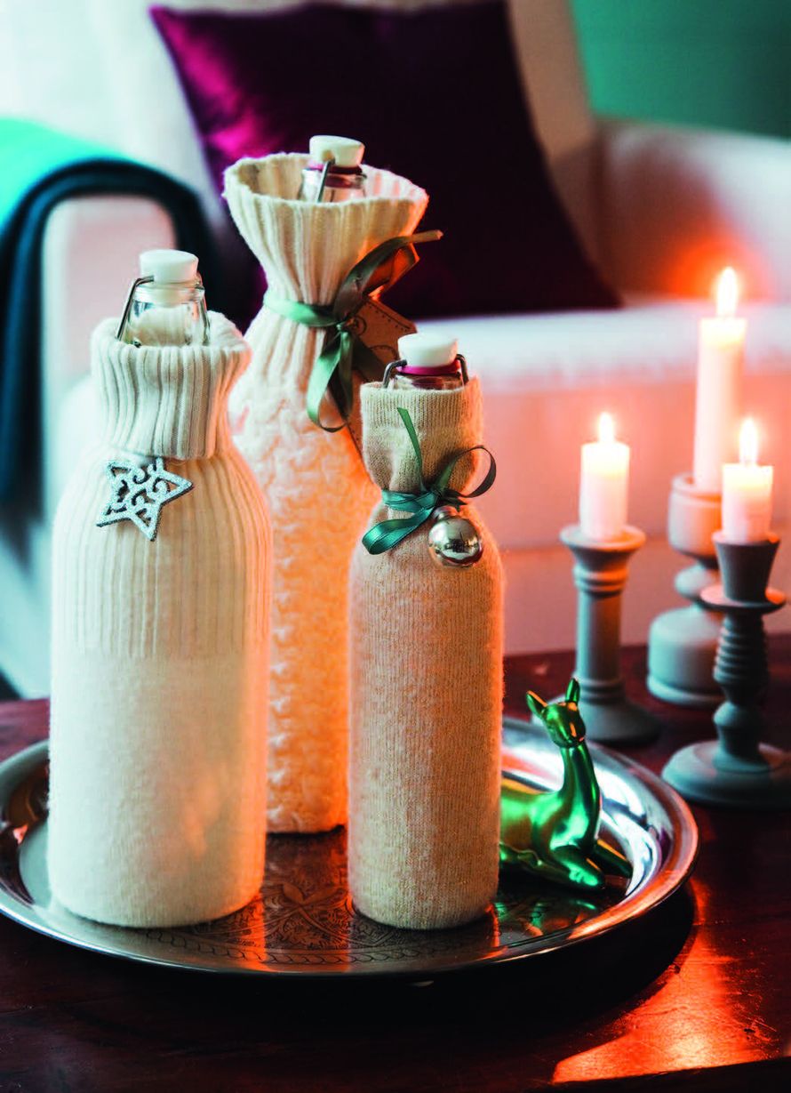 Kotoa löytyvä vanha villapaita saa uuden elämän pullonsuojuksina.