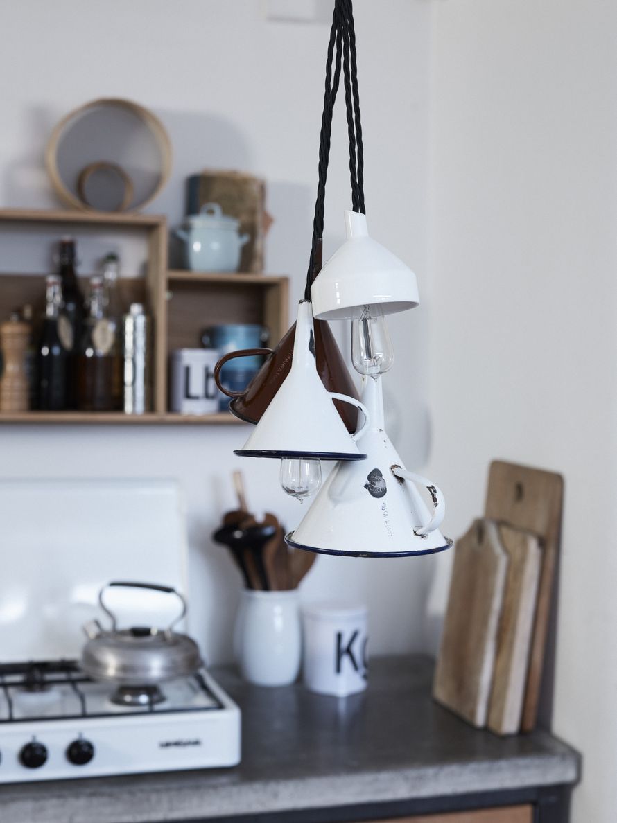Tratit kattoon! Kun sato on saatu talteen ja viimeisenkin mehupullon korkki suljettu, on aikaa askartelulle. Mummun vanhoista mehusuppiloista syntyy helposti hauska kattovalaisin. Kolhuisista suppiloista tehty lamppu tuo kotiin trendikästä teollisuustunnelmaa.