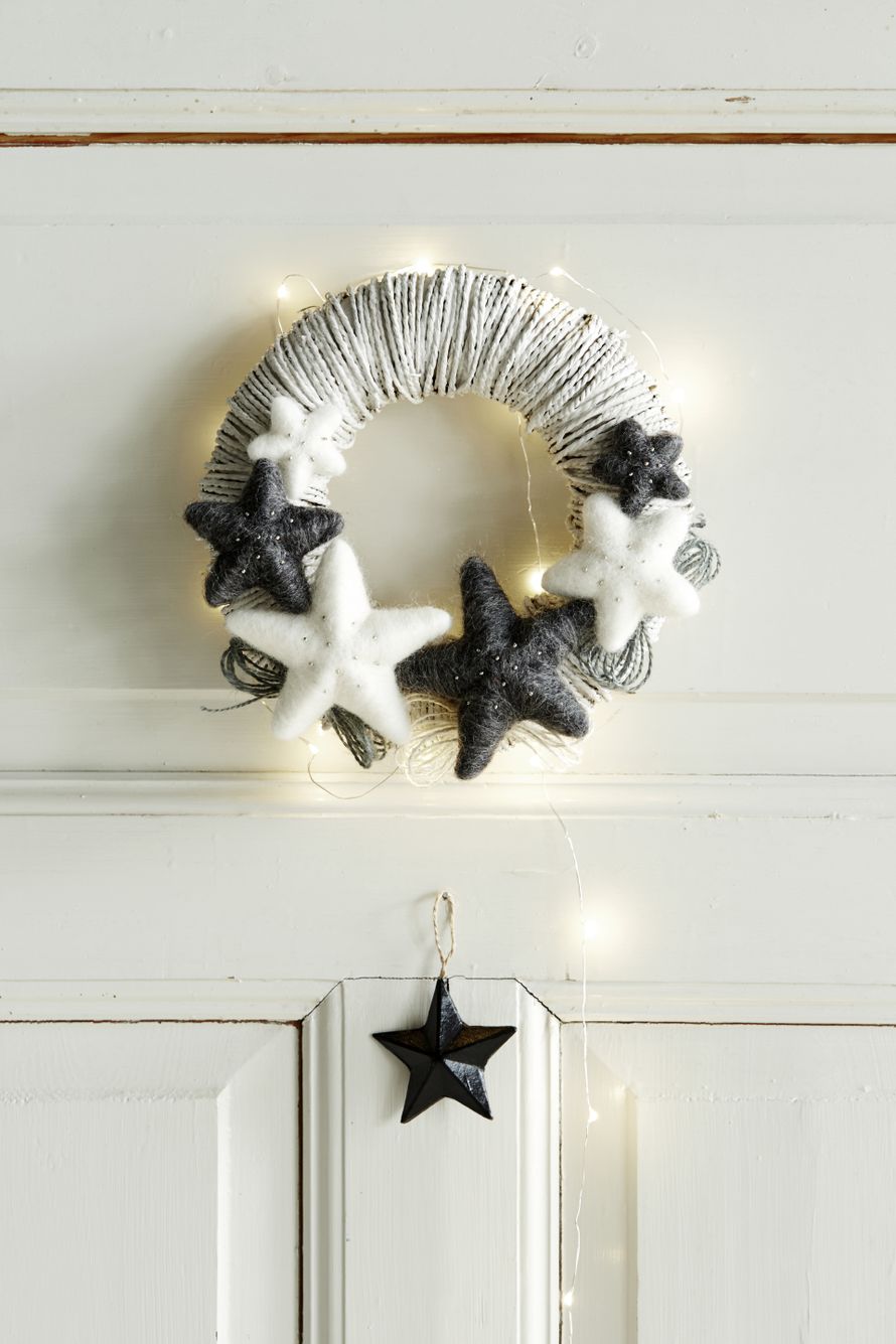 Mustavalkoinen ovikranssi ilahduttaa vaikka lahjana.
