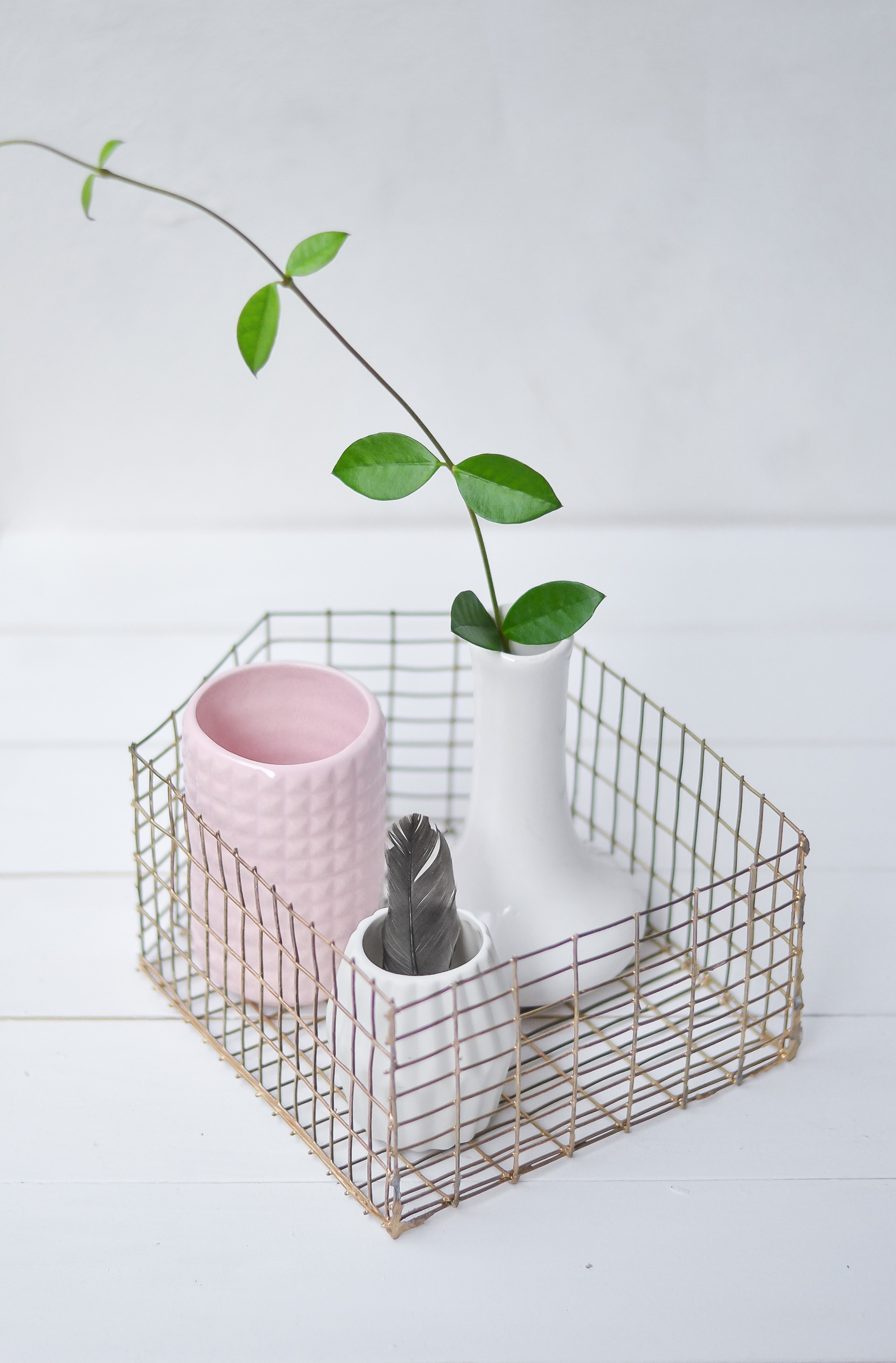 - Kun liimaukset ovat kunnolla kuivuneet, spray-maalaa kori eri suunnilta muutamaan kertaan. Anna maalin kuivua maalauskertojen välissä.
