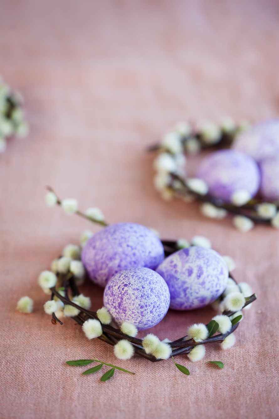 Roiskekoristeltu pääsiäismuna sopii modernin tyylin munamaalarille.
