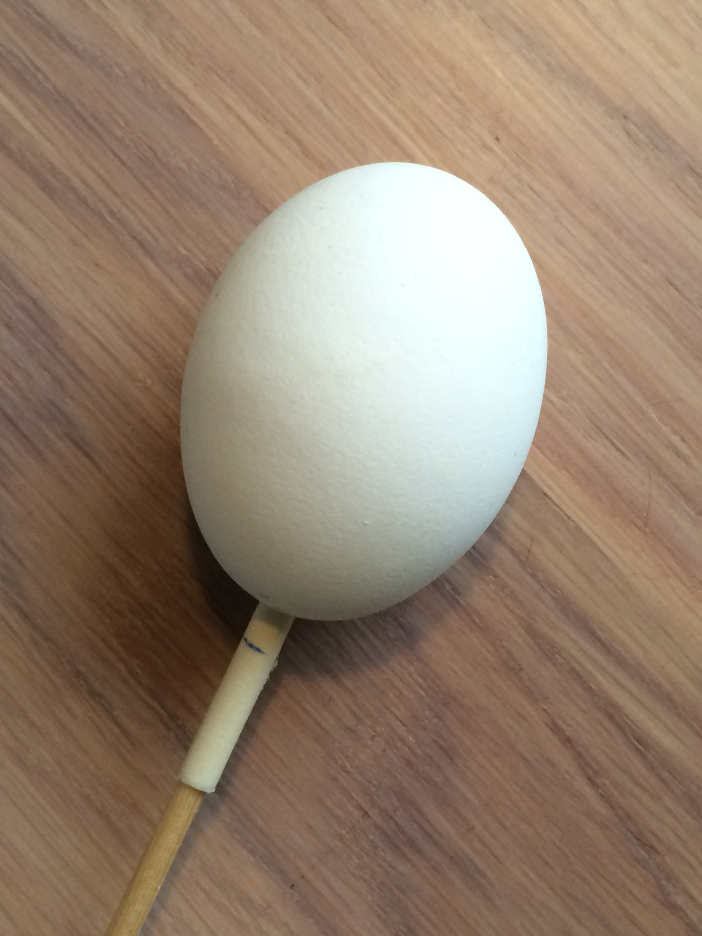 Herkkiä kuoria maalatessa hyvä apuväline on puutikku tai sukkapuikko, joka työnnetään varovasti kananmunan reikään. Kieputa tikkuun tueksi maalarinteippiä, jotta kuori ei pääse heilumaan. Kepin päässä kuorta on helppo pyörittää kuorta maalauksen edistyessä.