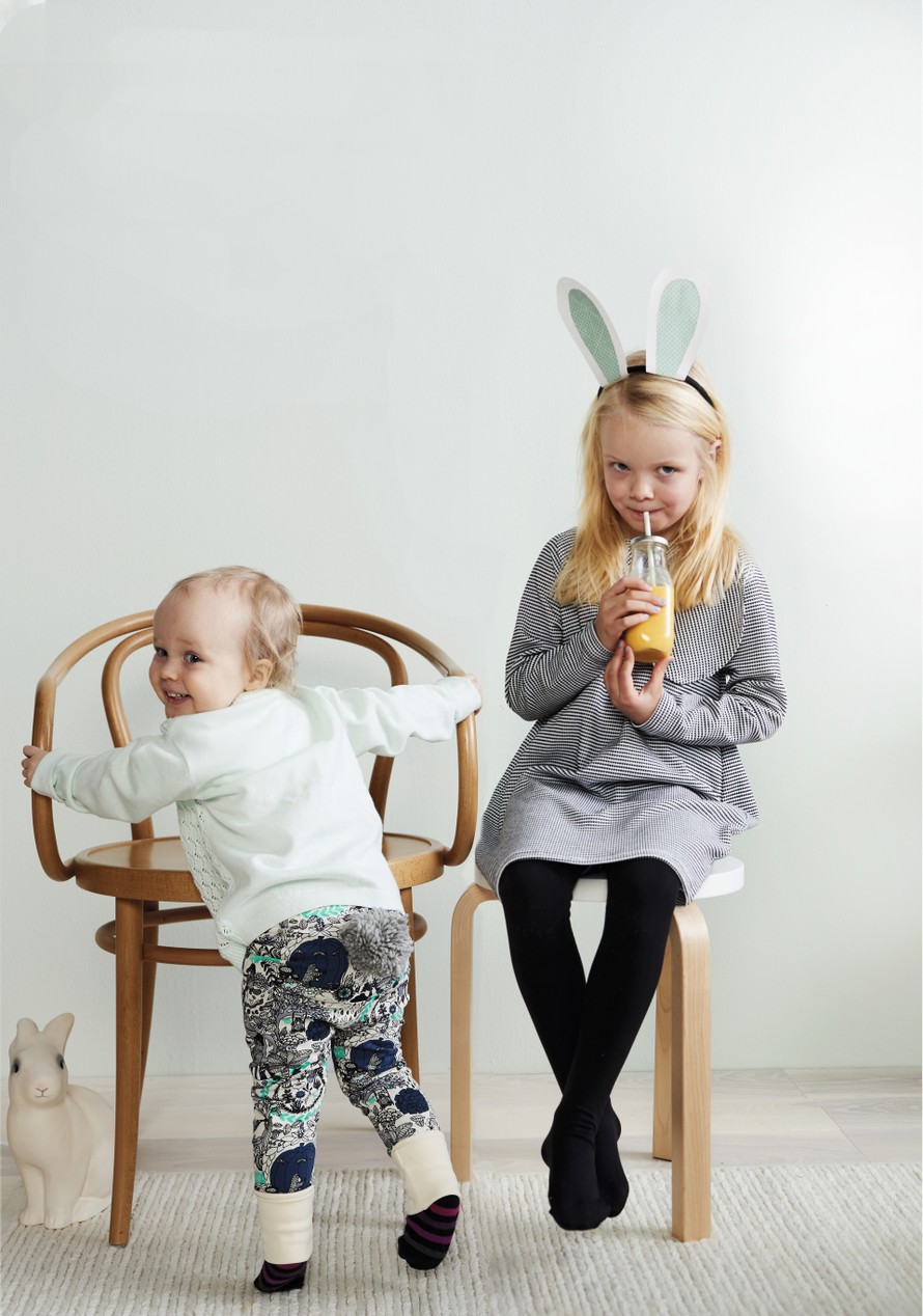 Neuletakki KappAhl ja leggingsit Aarrekid, Punavuoren Peikko. Mekko Mukava, Punavuoren Peikko. Jakkara Artek. Pupuvalaisin Ombrellino.
