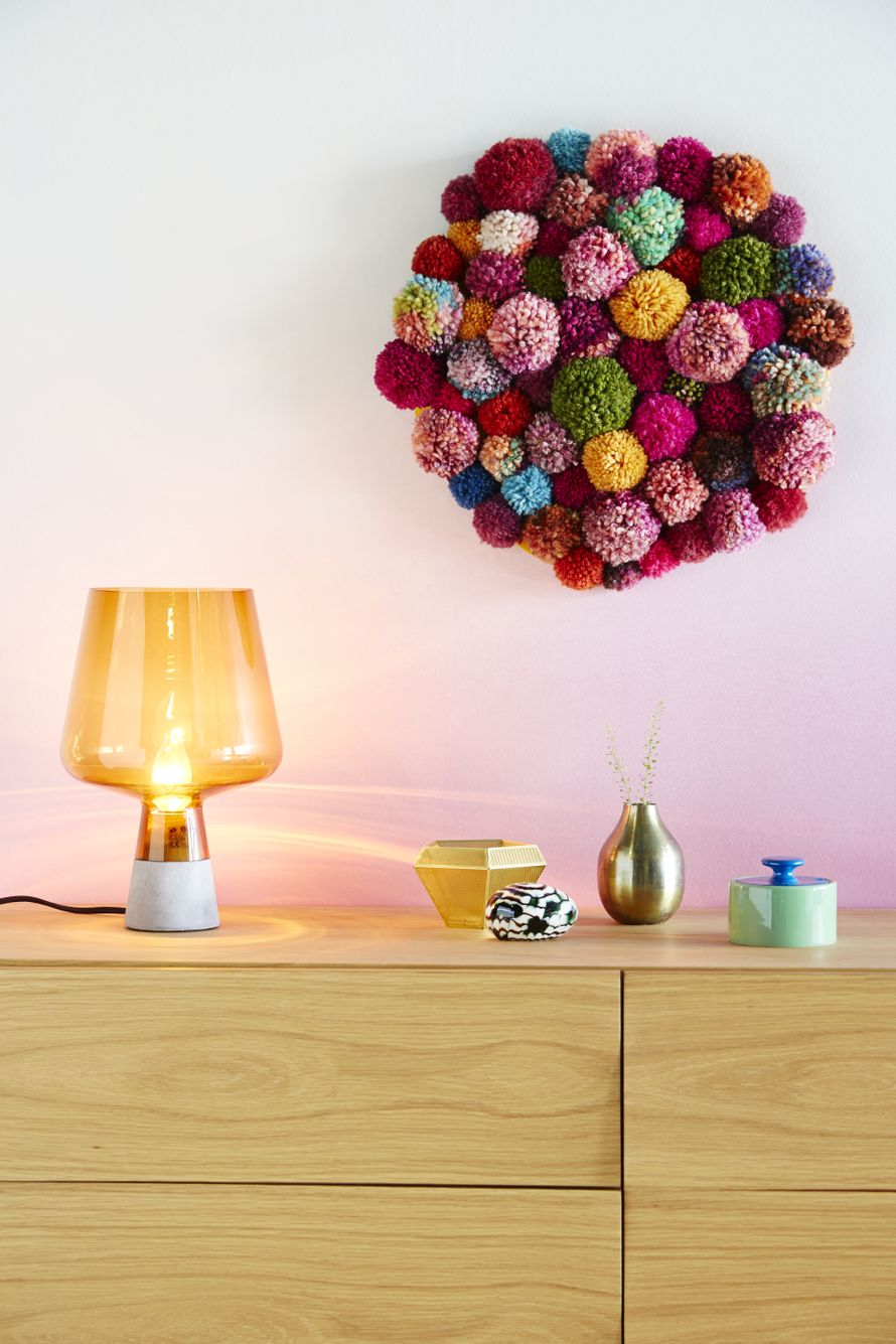 Tee villalangasta reilu keko erivärisiä pompuloita.
