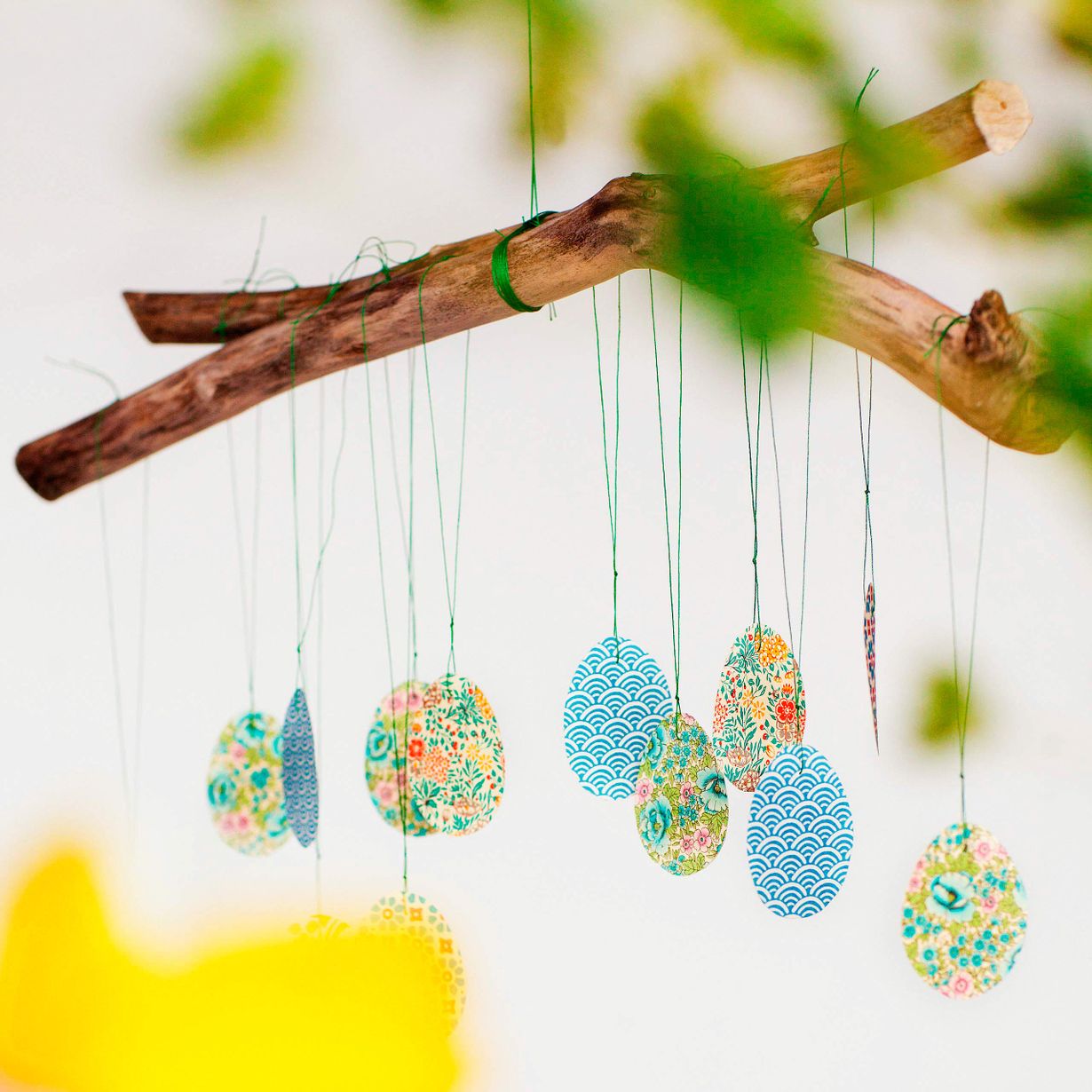 Ripusta kepit kattoon ja pujottele munat oksille roikkumaan.