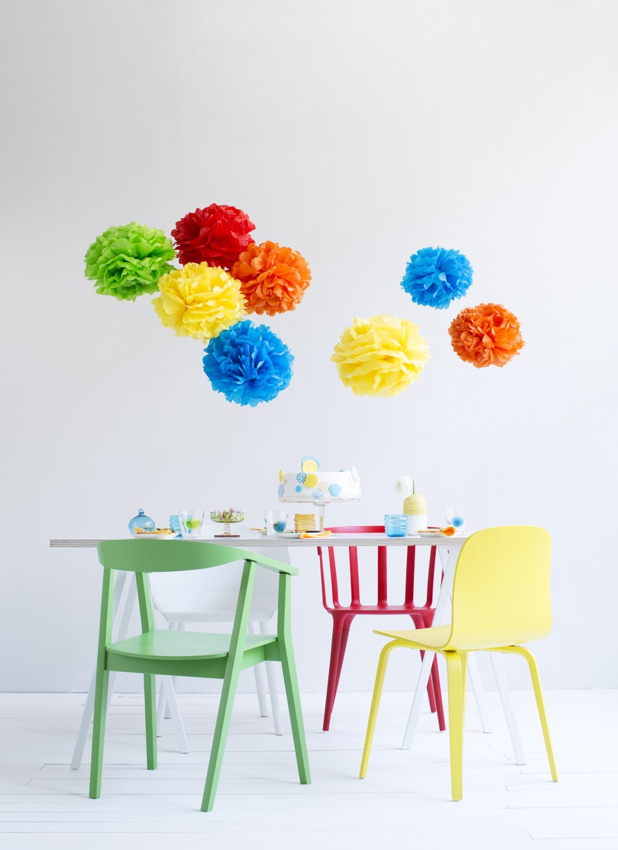 Suositut pompom-paperipallot on helppo tehdä itse. Ne virittävät juhlatunnelman myös uudenvuoden kemuihin.
