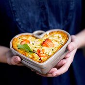 Tarvikkeet: Punaista aaltopahvia ja paperilankaa. Kokonaisia pippureita. Liimaa ja sakset.