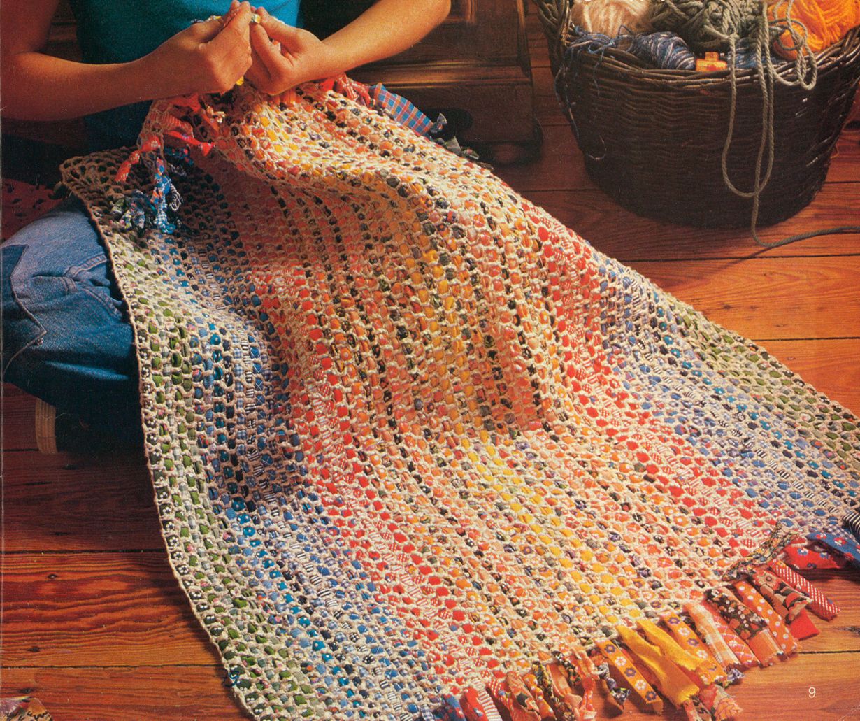Räsymaton tekeminen onnistuu myös ilman kangaspuita. Virkkaat vain kalalangasta verkon ja pujottelet siihen kangassuikaleita.